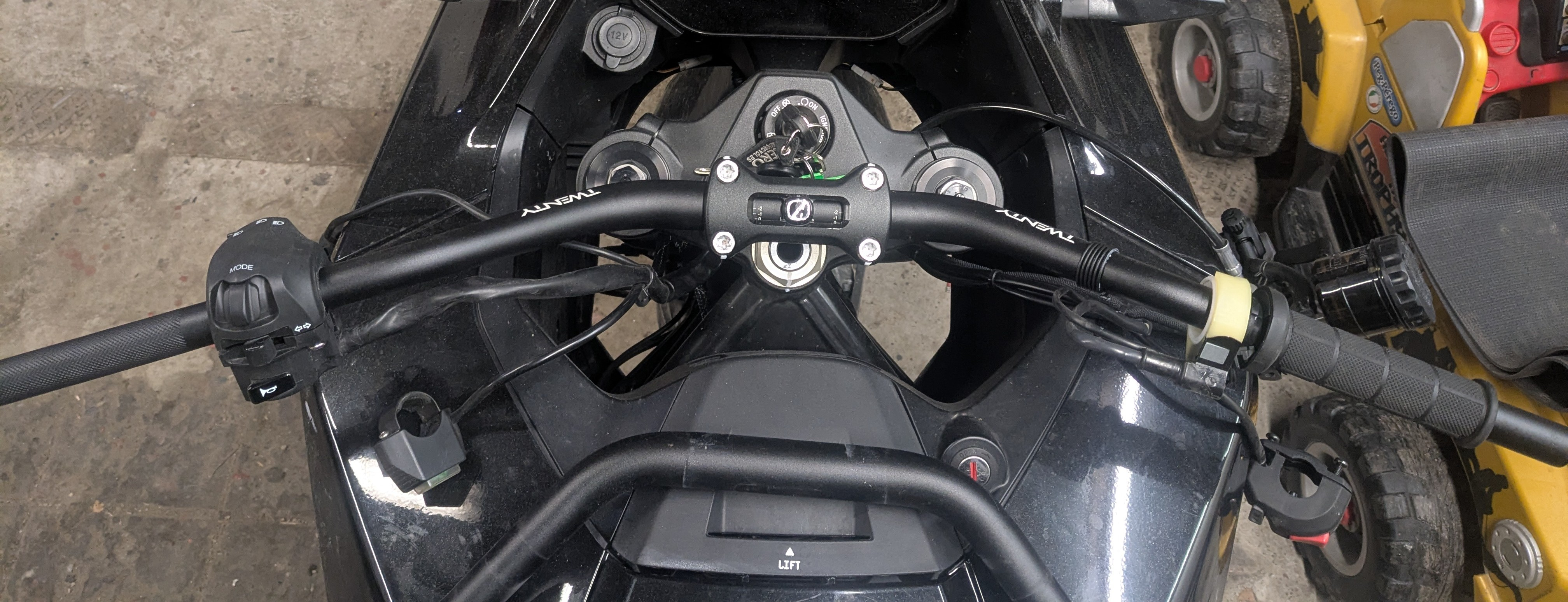 Daher die eindringliche Warnung an Zero Fahrer: NIE die zwei Fahrgriffschalen komplett aufschrauben und aufmachen (sonst siehe oben), sondern die zwei Klemmschrauben nur gerade so weit lockern, dass man den Positions-Nuppsi aus dem Loch im Lenker kriegt!
