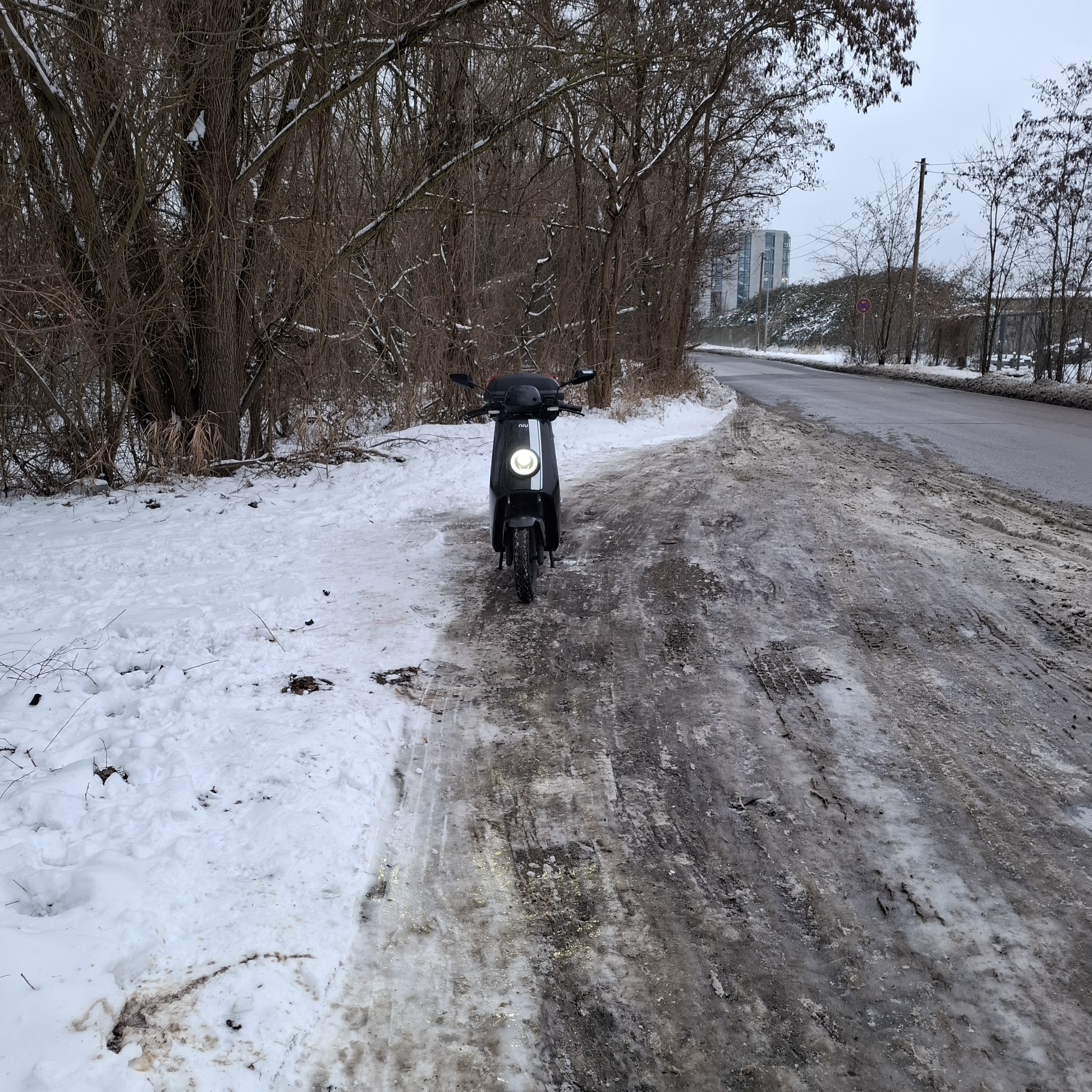 Fahren im Winter. Die Hauptstraßen sind fei. Nebenstraßen nicht. Aber es geht.