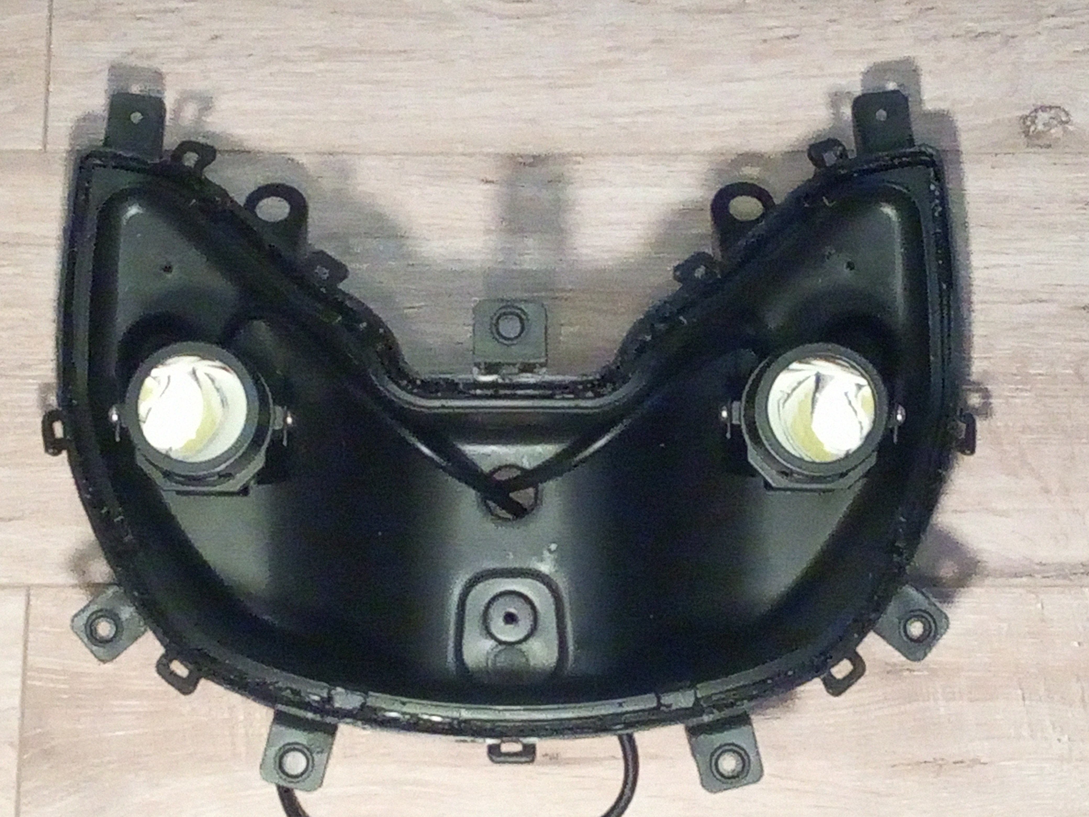Als Provisorium habe ich auf die Schnelle ein Projektorlicht gebastelt, das macht schon 3mal so viel Licht wie das Original - und das auch noch genau dort, wo es soll: auf der Straße (ähm... meine Fahrspur natürlich :lol: ) und nicht im Auge des Gegenverkehrs!