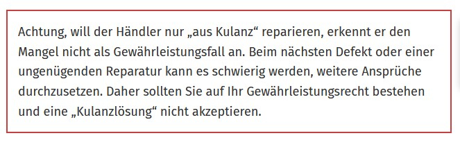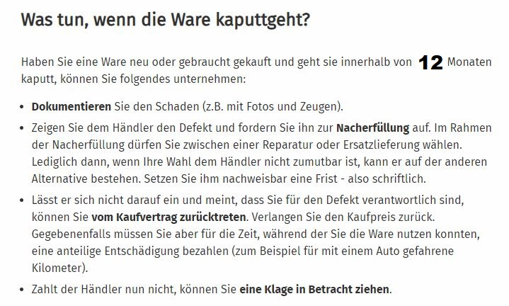 aber eine wandlung und angesicht der "nicht benutzung" über monate, kann man schon den kaufpreis zurückfordern (mit abschläge)