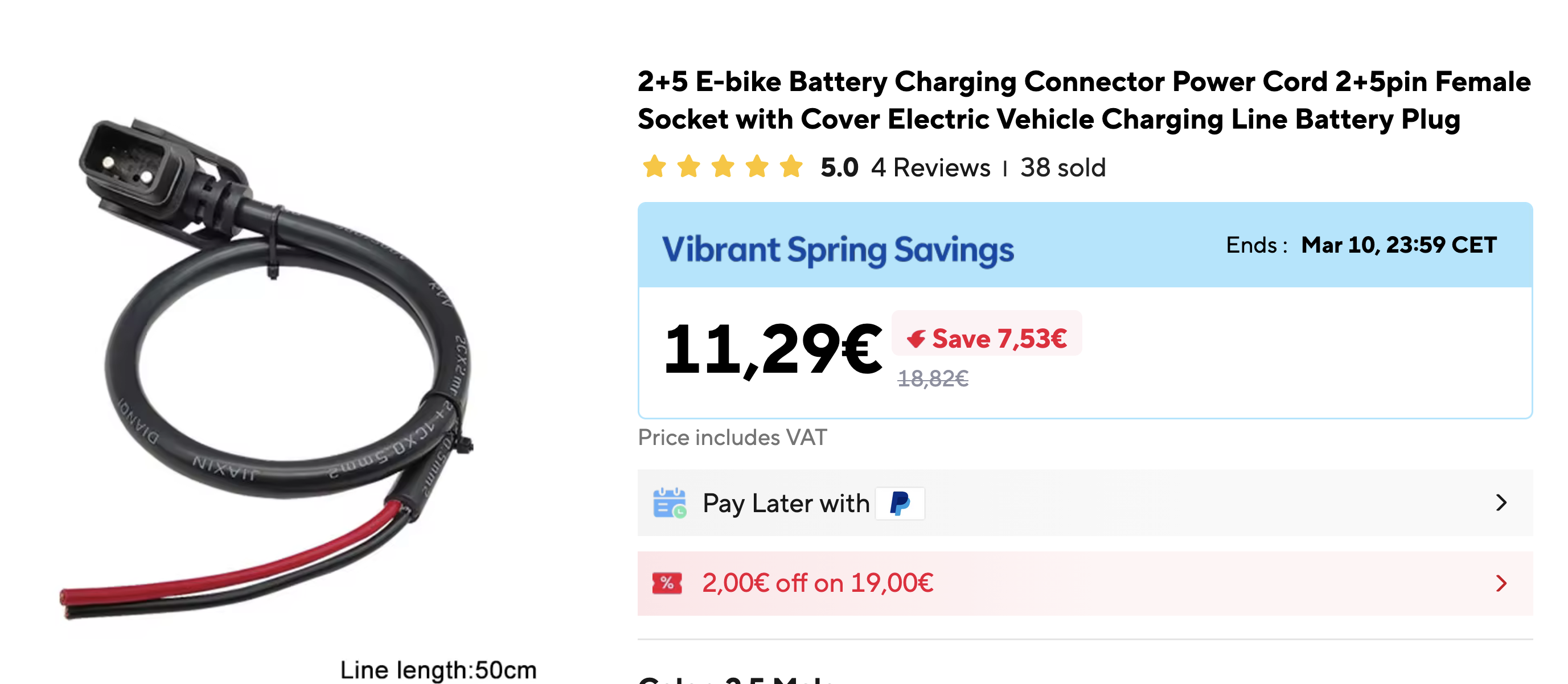 Die Bedeutung von Charging Connector ist dir bewusst? Damit meinen die Chinesen in der Regel 5-10A wegen geringem Kabelquerschnitt. OK, da steht 2qmm im Bild auf dem Kabel. Verlassen würde ich mich darauf aber nicht. Wenn du mit einem Akku zügig vom Fleck kommen willst, brauchst du min. 40A.