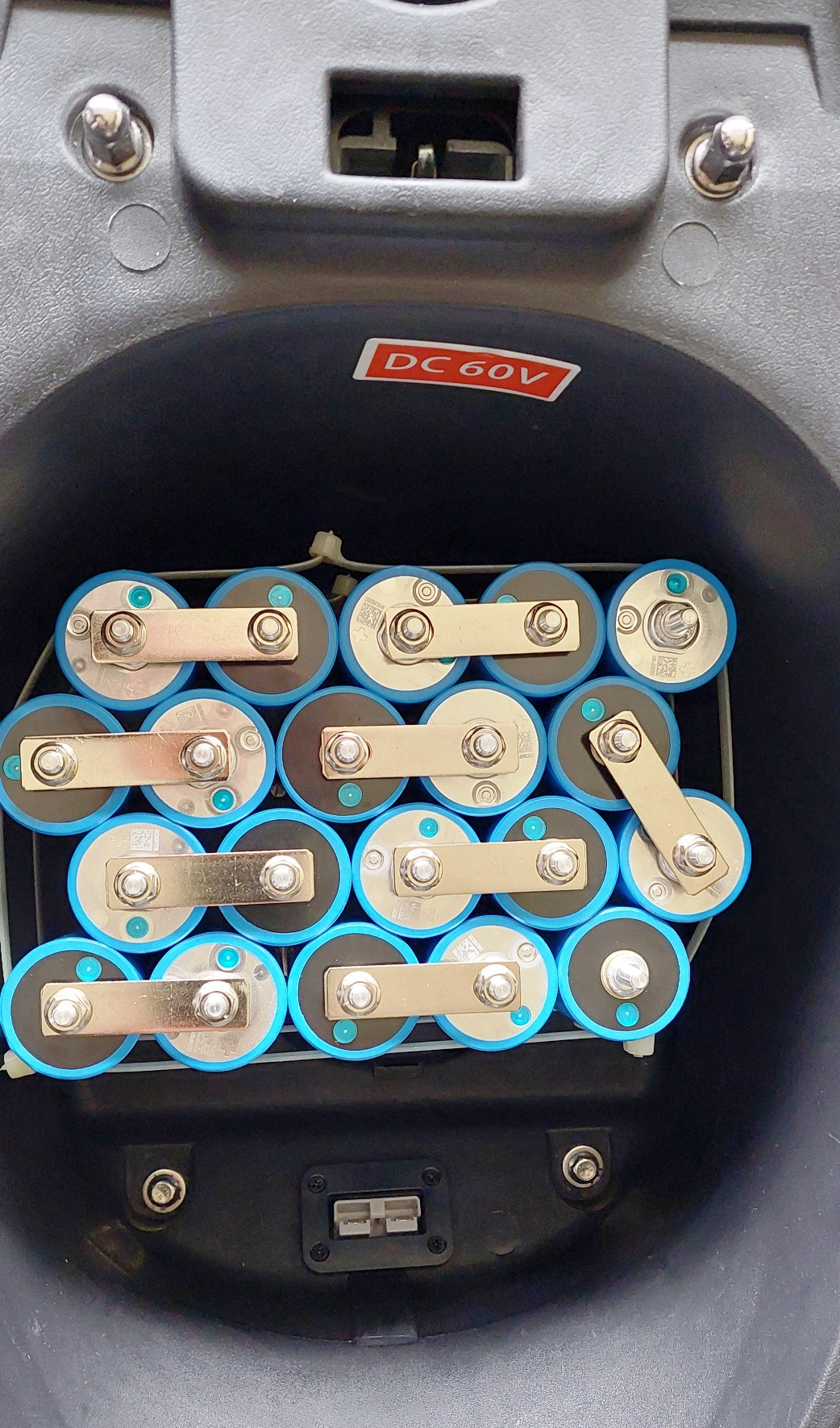 Heute angekommen, Zwanzig dieser blauen LFP Zellen. Zwei hängen schon am Ladegerät und werden so auf max. vorgeladen. Alle Zellen hatten bei der Auslieferung 3.30Volt. Über den Daumen geschaut so um die 50% Ladung. Bei der ersten Ladung fließen um die 12-14Ampere rein. Wenn das zweite Modul fertig ist, werde ich es hier vorstellen. Das kann nur gut werden….. 21S LFP im 60Volt System des ehemaligen Blei-Rollers. Ja möglich aber nicht zu empfehlen! Das ist nicht nur meine Ansicht, sondern auch des verbauten Stepdown für die 12Volt. Die Spannungsfestigkeit liegt laut Hersteller bei 72Volt. (laut Aufkleber) Bei 20S LFP bewege ich mich in den Rahmen der ursprünglichen Speisespannung. Bei 21S fällt die Spannung erst einmal nicht unter dem kritischen Wert und der Stepdown wird im Grenzbereich betrieben. Da kann dann schon mal das Licht ausfallen oder im schlimmsten Falle hat man gleich die volle Speisespannung im 12Volt Netz anliegen was katastrophale Folgen hat. Ich habe hier ältere Beiträge gelesen wo wohl nicht darüber nachgedacht wurde.