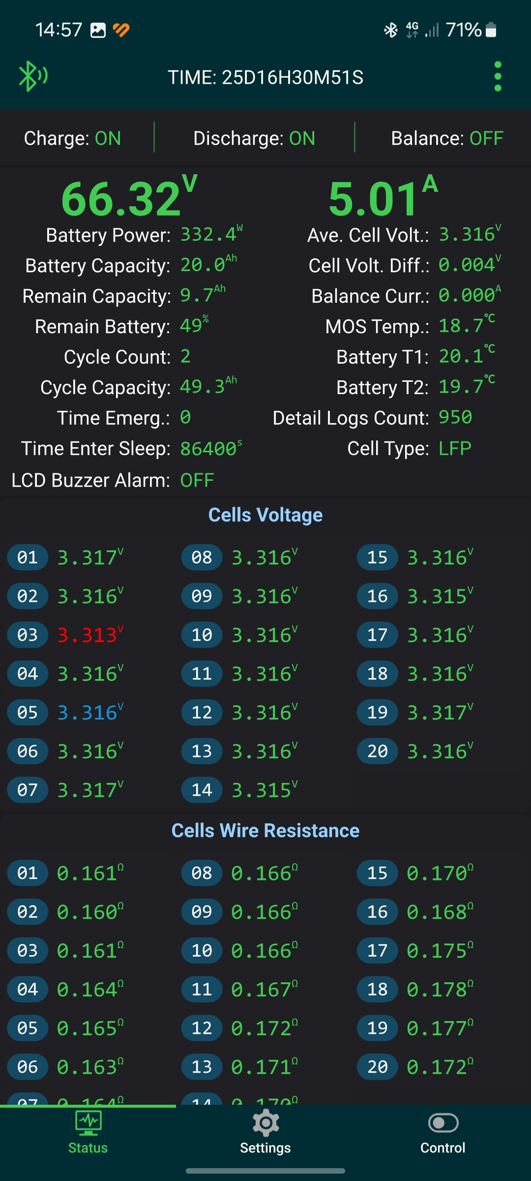 Aus dem Hause Jikong hätte es sicher auch ein kleineres BMS getan. Achtung der Verbrauch des eingeschalteten BMS ist nicht unerheblich. - der Täter ist sicher Bluetooth. Bei mir waren es im Januar. Februar 7.2kWh.