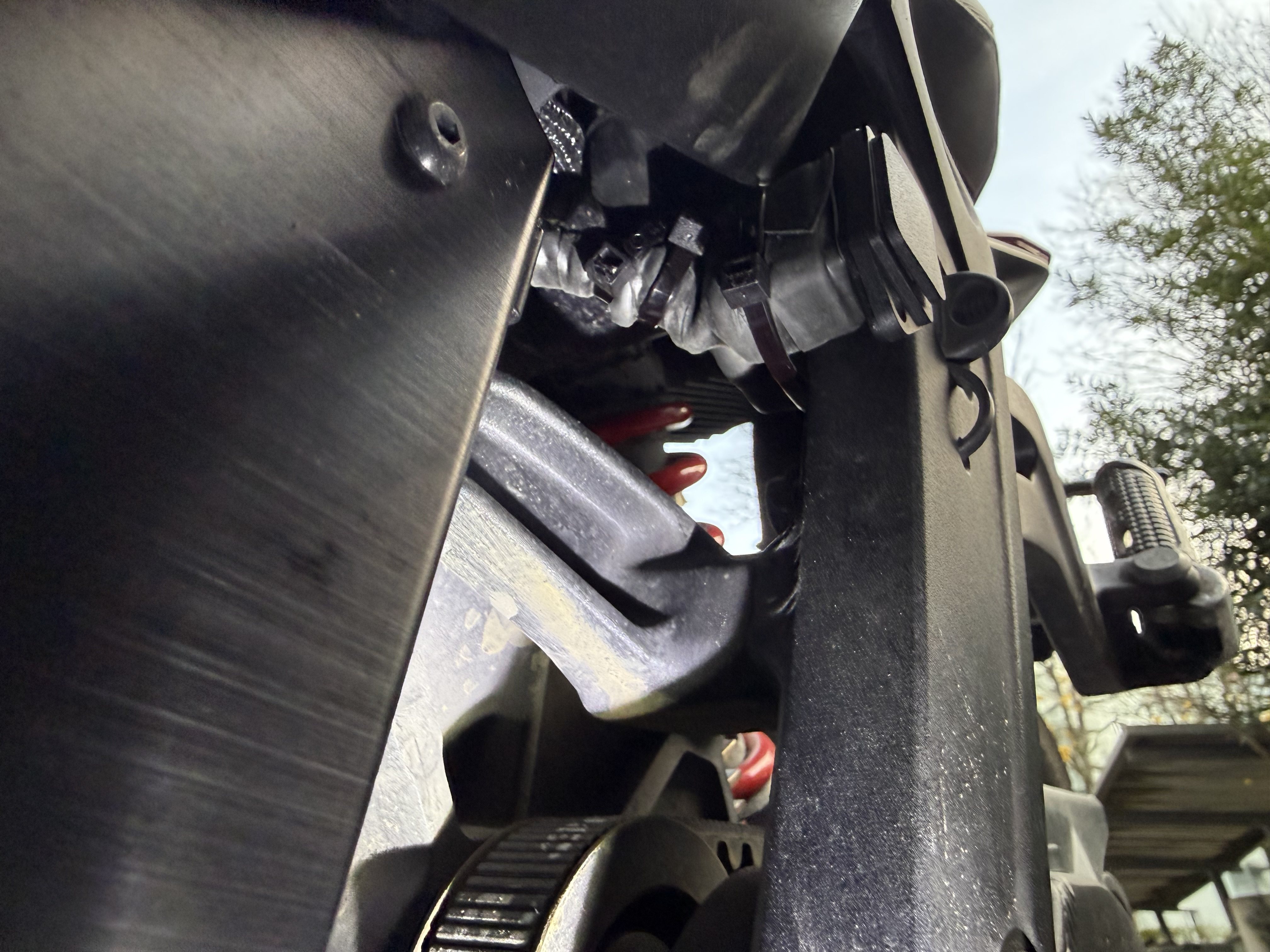 Das Ganze habe ich natürlich ordentlich mit Schrumpfschlauch abgedichtet, damit keine Feuchtigkeit reinkommt. Verlegt ist der neue Anschluss jetzt auch schon – sitzt genau an der gleichen Stelle wie der originale Anschluss, sieht also fast aus wie ab Werk, nur eben deutlich praktischer für das neue Setup. Diese Woche steht dann noch der große Test an der Säule an, aber vom mechanischen Aufbau her bin ich jetzt erst mal echt zufrieden.
