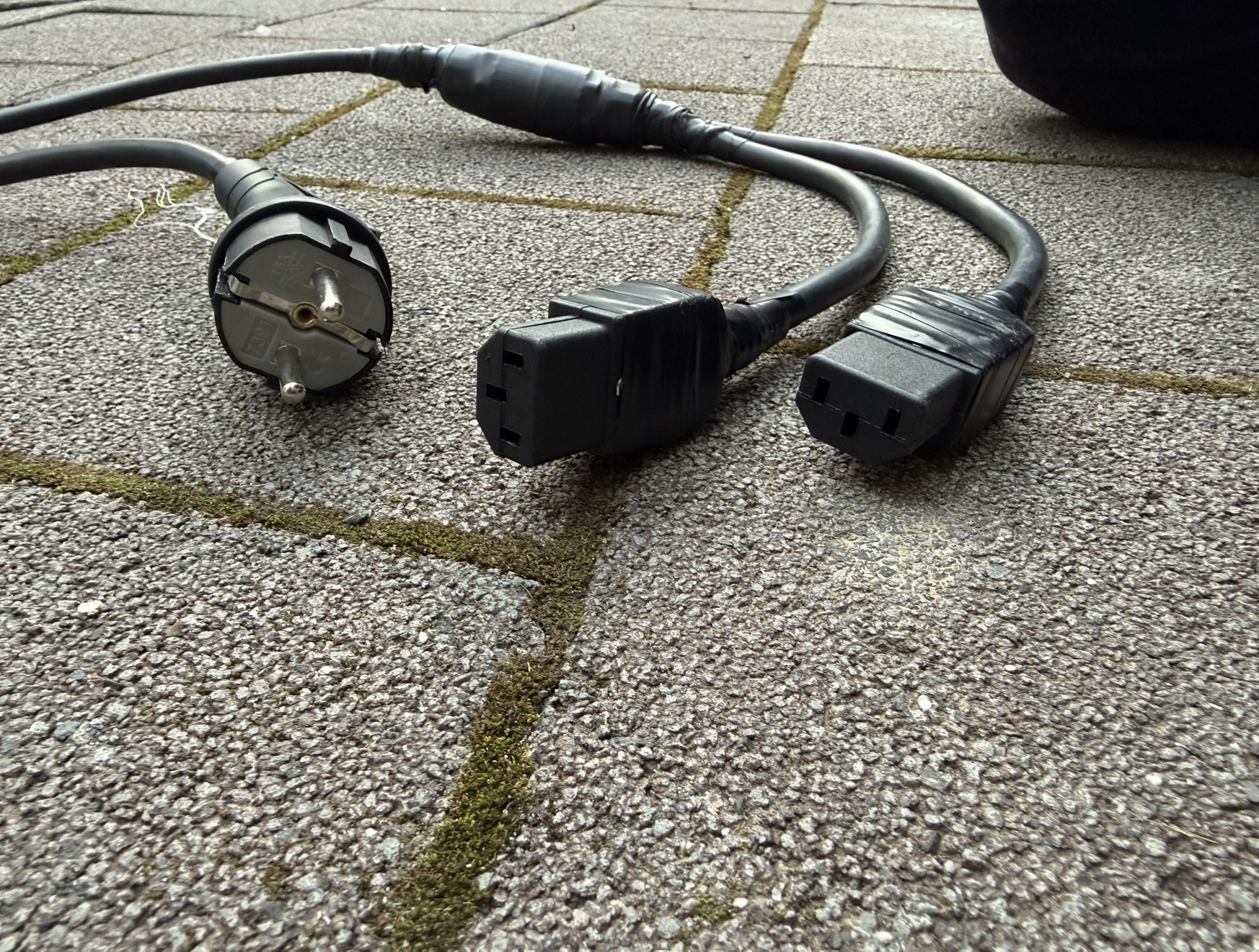 Habe heute den nächsten Schritt gemacht und den originalen Schukostecker vom Ladegerät komplett rausgeworfen. Stattdessen ist jetzt eine C14-Buchse (Female) dran, damit das Ganze sauber an mein Y-Kabel passt.