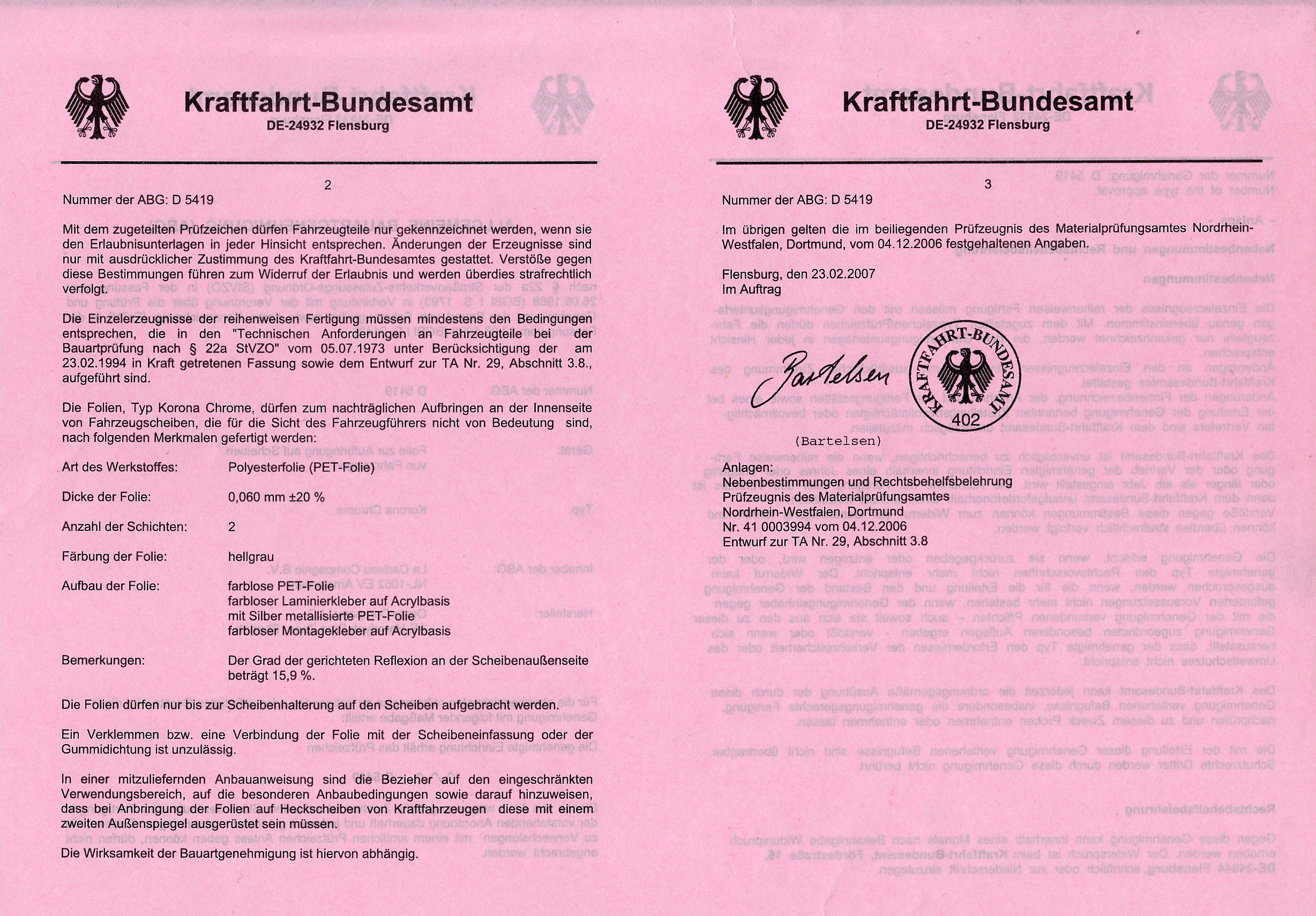 ob sie noch gültig ist, ist fraglich, den ich hatte 2 spiegelfolien um letzten jahrhundert ergattern können, den im allgemeinen waren sie verboten.