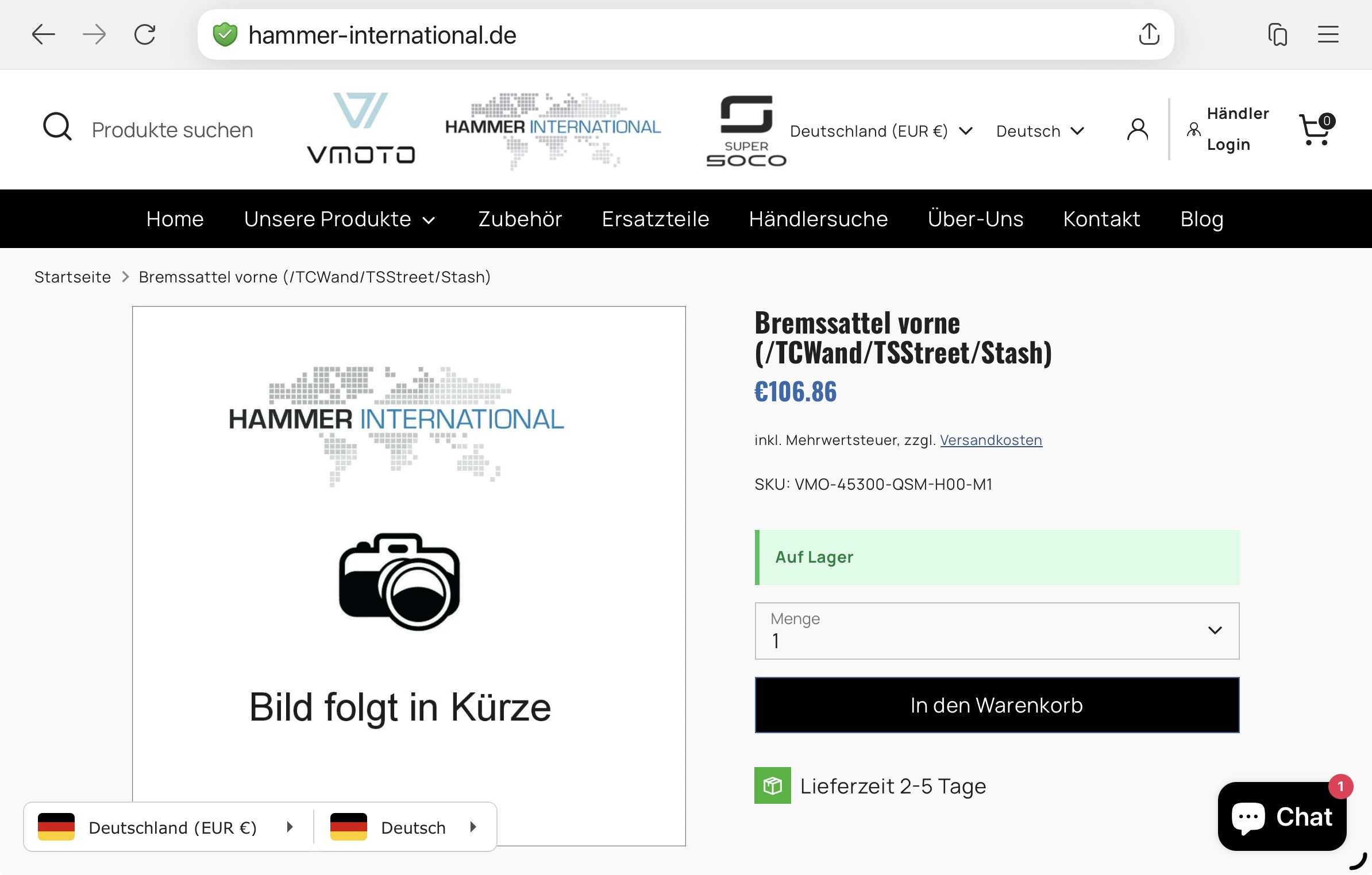 Auf der Homepage von Hammer International wird der vordere Bremssattel der STASH für 106.86 € verkauft.