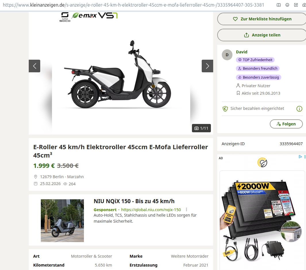 Achtung: der Roller wird jetzt für 1500 Euros angeboten.