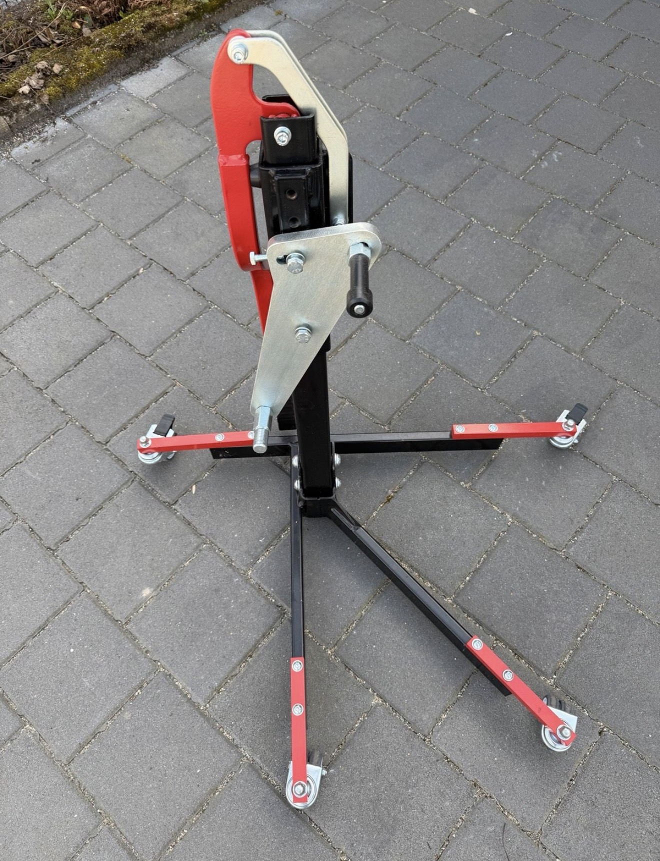 Ein Träumchen wäre ein Adapter auf den vorhandenen Radgreifer/Schwellerheber für die Autos. Damit käme man auf eine vernünftige Arbeitshöhe, aber sowas habe ich bisher nur sehr vereinzelt, und dann auch nur für unter den Bauch, gesehen.