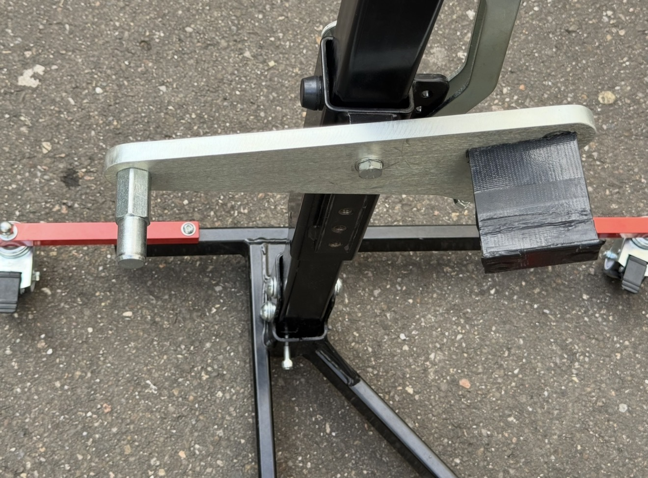 Ich habe heute die Adapterplatte für den Zentralständer fertig angepasst. Ich habe es aus massivem Stahl gefertigt, da bricht so schnell nichts ab.