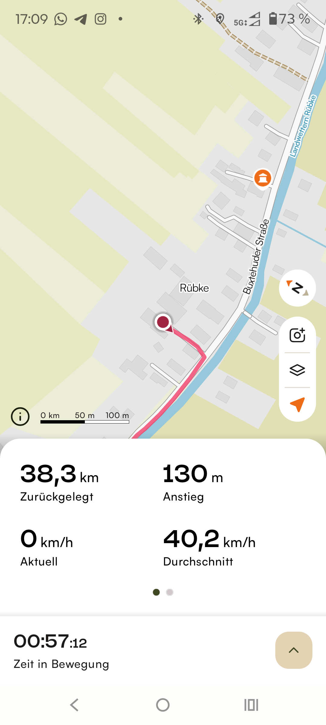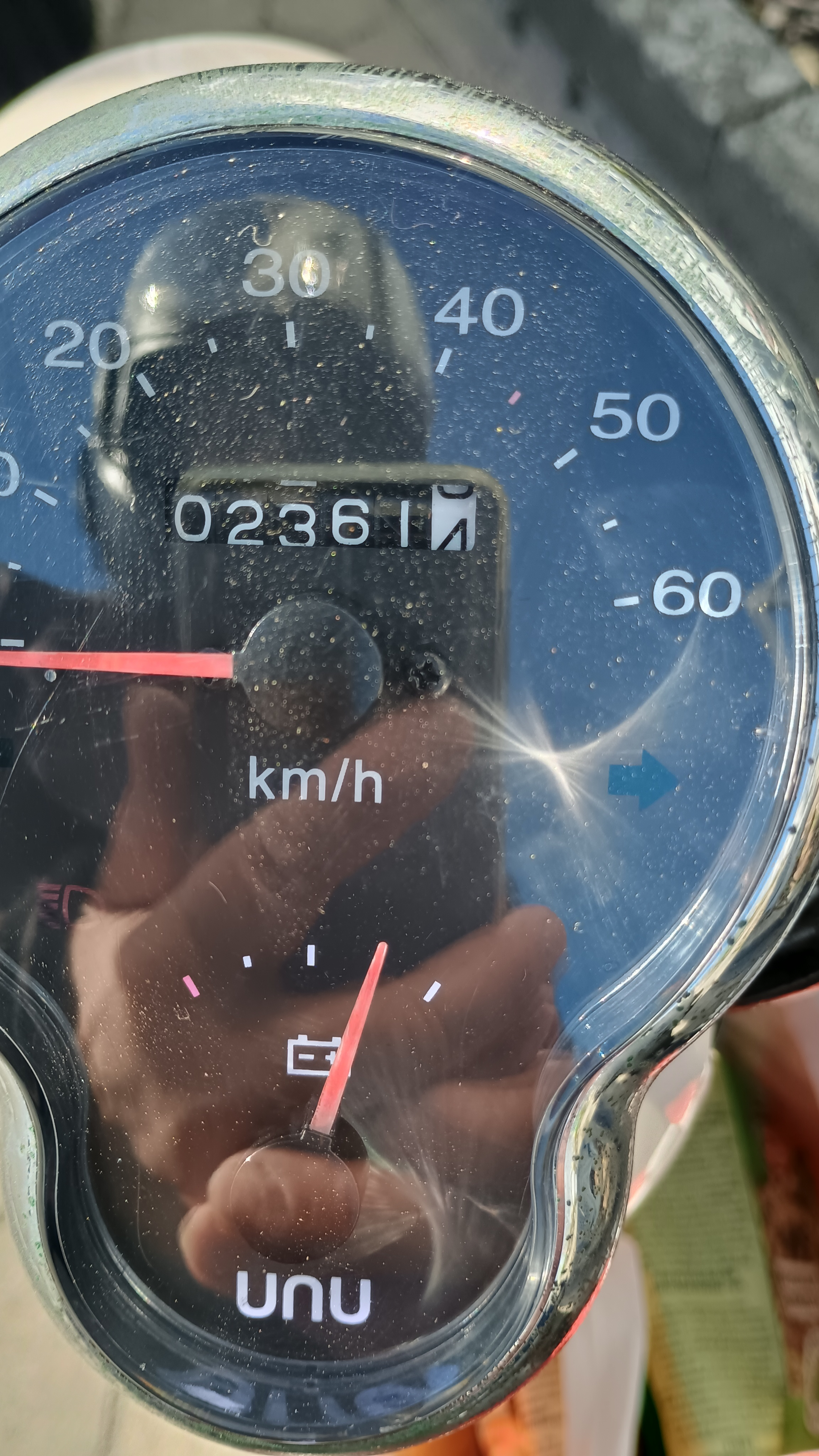 Urlaub ist um und Wetter passt. Mit 2343 km auf der Uhr ging es los. 17 km , laut Tacho immer zwischen 45 bis 47 km / h, Wind war nicht von Vorne. Kein merklicher Abfall zu spüren oder am Tacho zu erkennen.