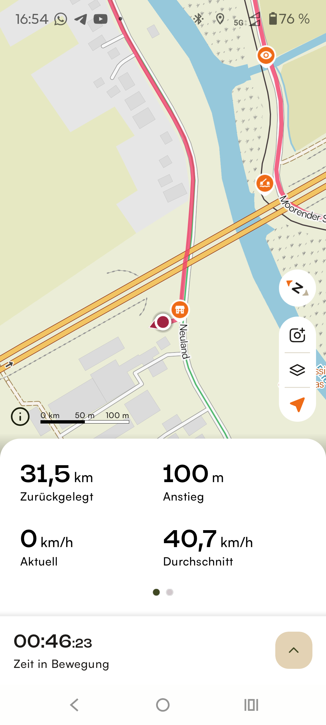 Zurück gab es den Wind schräg von Vorne, mit Geduld gingen noch knapp 45 km/ h.