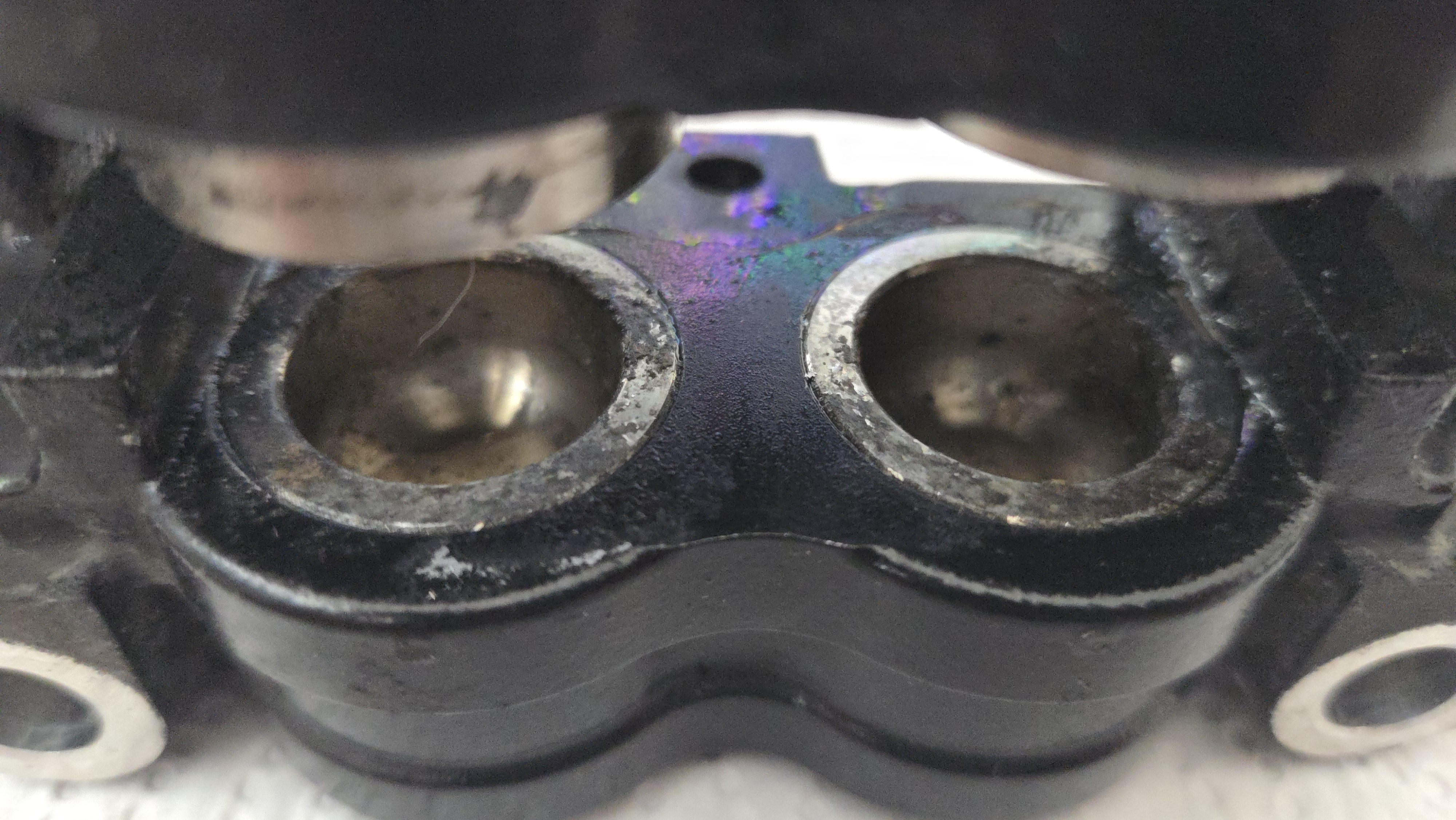 Zum Bremssattel: der sieht doch völlig normal aus, wo soll da Gammel sein? Die Platten der Beläge sind etwas gammelig, aber das ist völlig ok. Also letztendlich: ich sehe da kein Besitzer-/Fahrerverschulden, wenn die Zange fest ist. Was ich sehe ist, dass die Bremskolben beide einen schwarzen Drecksstreifen haben, das wird sicherlich Abrieb vom Bremsbelag sein. Der kann sich natürlich auch zwischen Bremskolben und Zange einarbeiten und für Schwergängigkeit sorgen. Eine Werkstatt hätte die schon mal mit Bremsenreiniger behandelt.