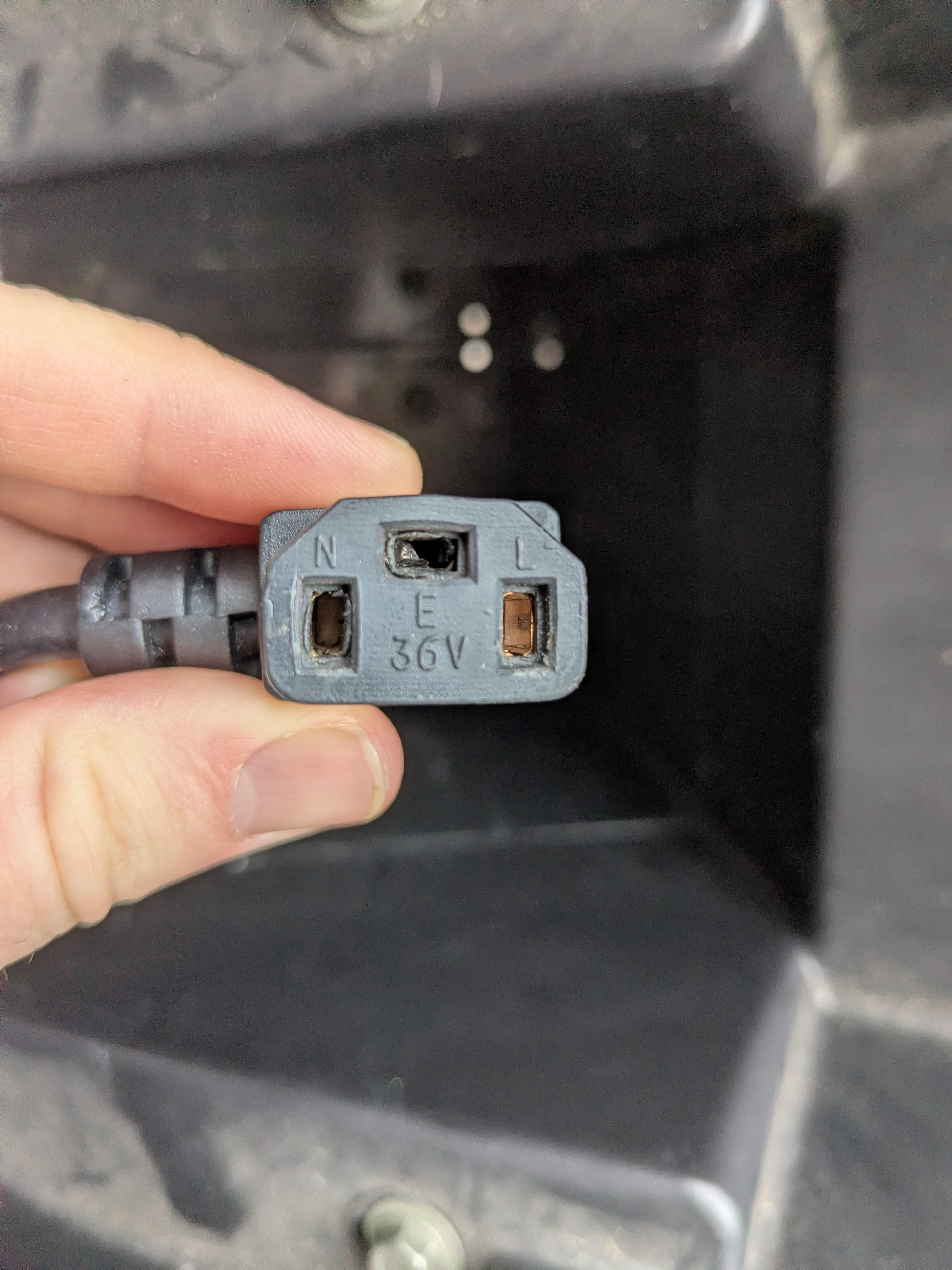 Nach etwas Recherche habe ich festgestellt, dass dies kein seltenes Probelem ist, da diese "Art Kaltgeräte-Kabel" nicht unbedingt für die hohen Ampère Werte ausgelegt sind 10A vs. ~30-40A bei Vollleistung).