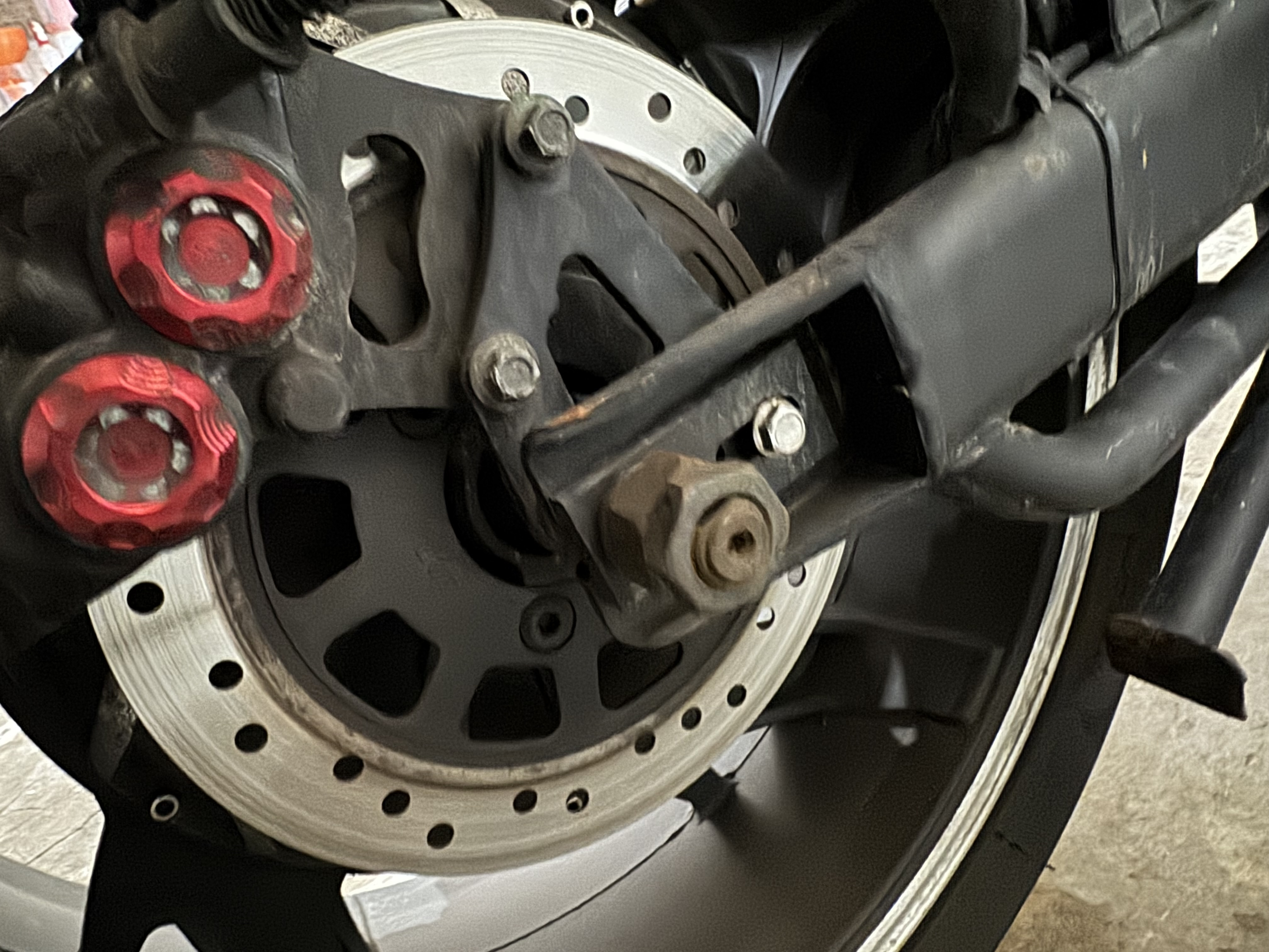 da ich nächsten Monat zum TÜV muss, habe ich mir mal die Verschleißteile genauer angesehen und dabei festgestellt, dass die hintere Bremsscheibe schon ordentlich dünner geworden ist.