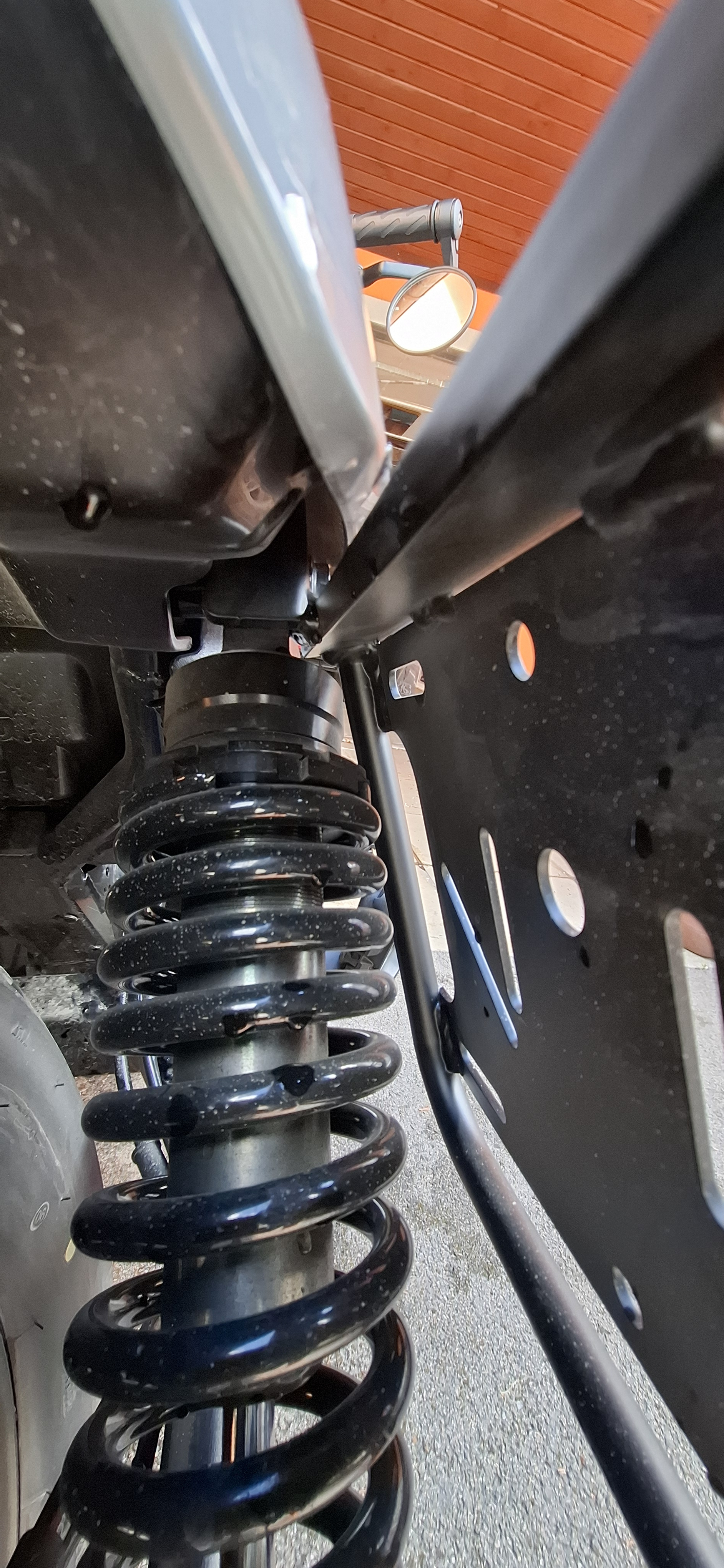 Deine Bilder sind doch recht Interresant. Sieht so aus als wenn der Taschenhalter beim Ferderbein mit angeschraubt ist.