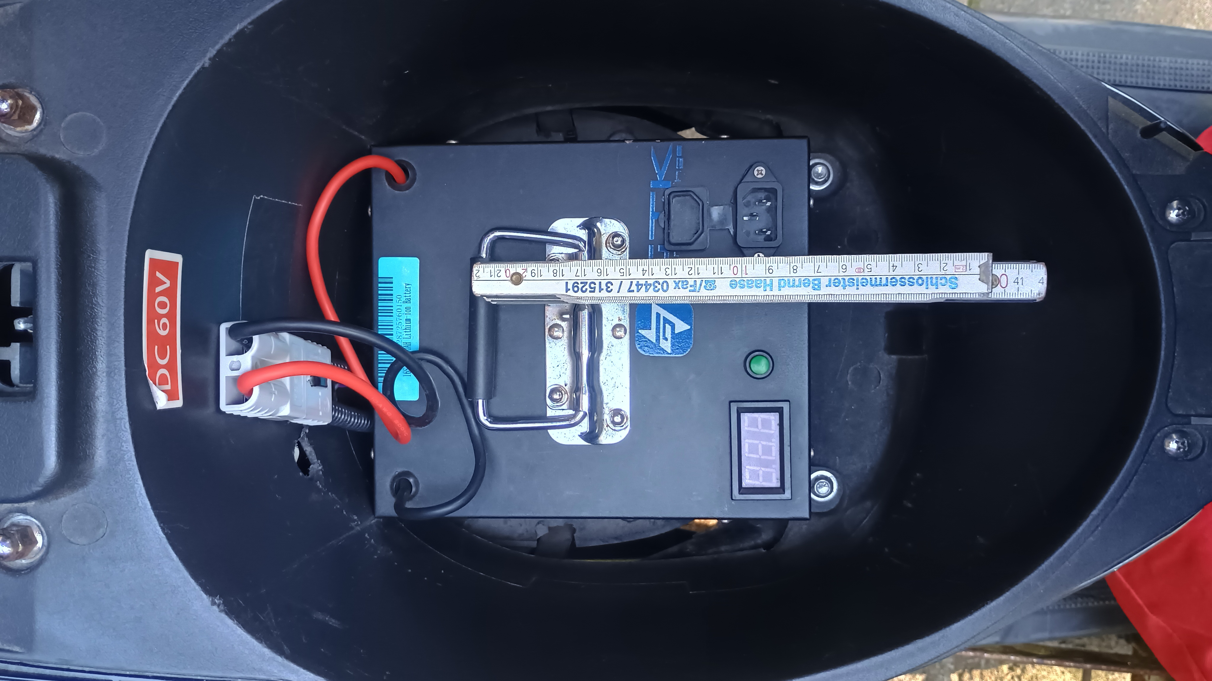 Bei einem 16S liegt die Entladeschlussspannung bei 52,8Volt. (3,30Volt je Zelle) Ja, ich weiß, da gibt es Spezies die da mit 3,0Volt rechnen oder gar 2,5. Aber das ist Murks da bei 3,3Volt die Zelle schon sehr schnell unter Last einbricht und man dann auch ganz schnell in die Tiefentladung kommen würde wenn das BMS nicht korrekt eingestellt wäre oder so eingestellt hat, dass man einen defekten Akku über längere Sicht haben möchte. Die Konsequenz daraus ist, dass man aus einem 16S nicht die volle Kapazität bekommen kann, da der Controller möglicherweise zu früh abschaltet. Vorausgesetzt du bleibst bei dem Original Controller. Bei der Verwendung eines 17S liegt man knapp über der Abschaltung, also das sehe ich als bessere Lösung. Dazu liegt die nominale Betriebsspannung dann bei 62,9Volt. Also was steckt in der Blechkiste drin?