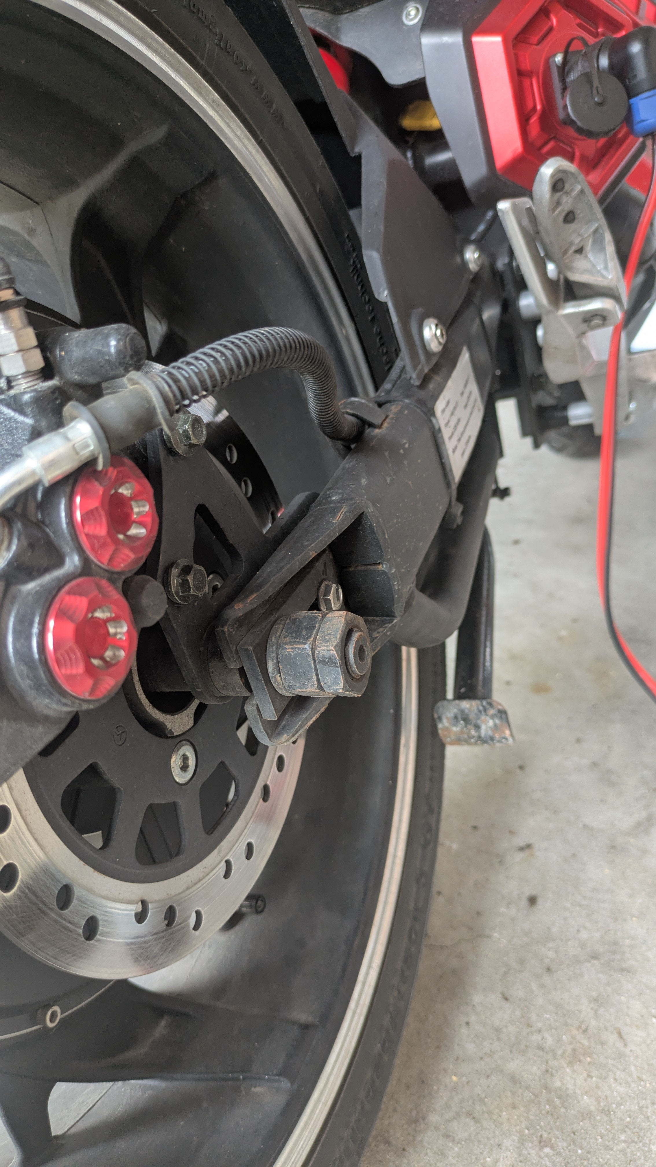 Ja, da sind auch die Bremssättel mit den roten Kappen drauf. Die Scheibe ist noch original (also von 2021).Hobestatt hat geschrieben: Di 21. Apr 2026, 12:50 Die Scheibe auf dem zweiten Foto scheint die gleiche wie meine zu sein. Hast Du die evtl. schon mal vermessen? Sind da auch die Bremssättel mit den roten Kappen verbaut?
