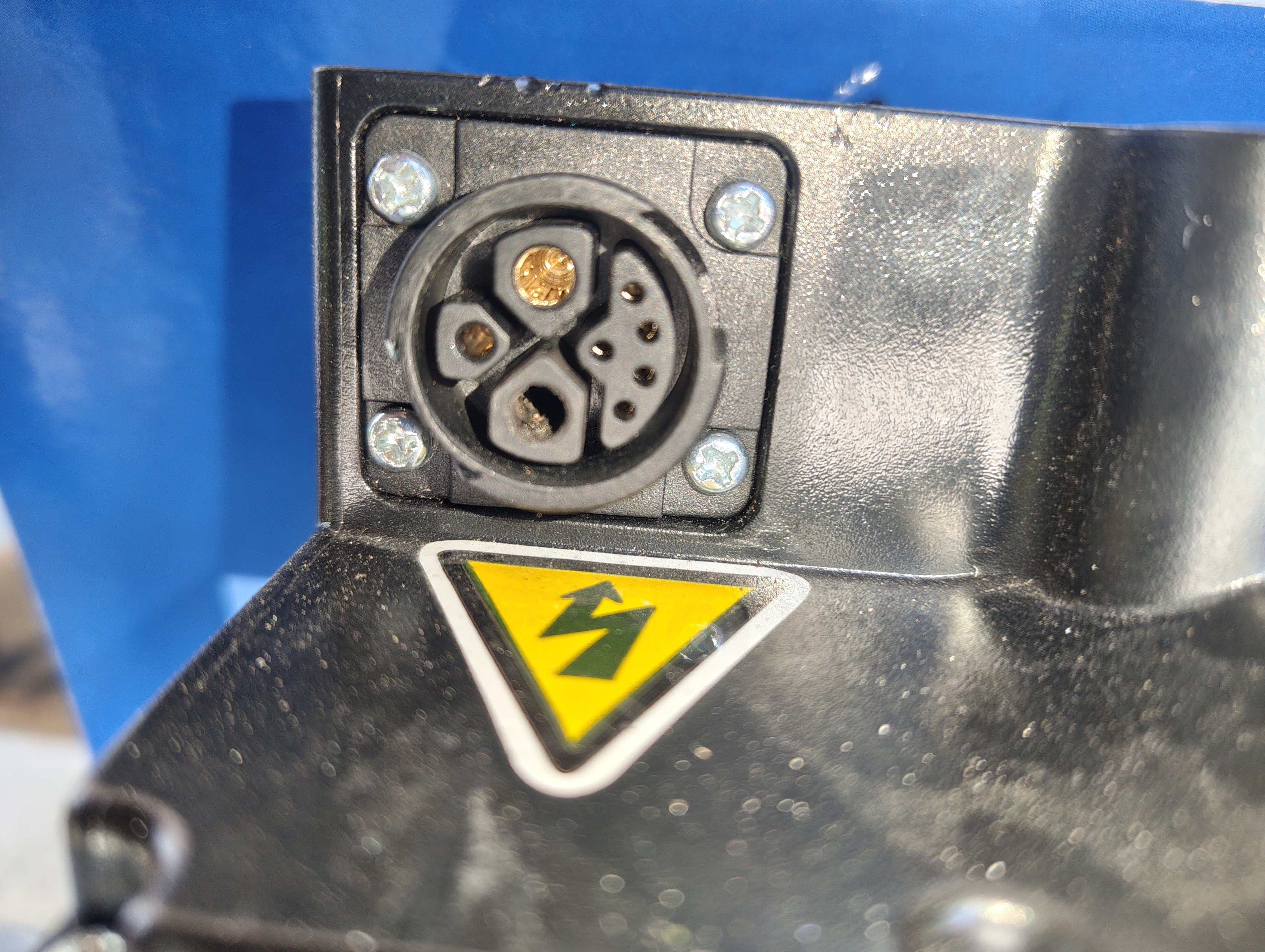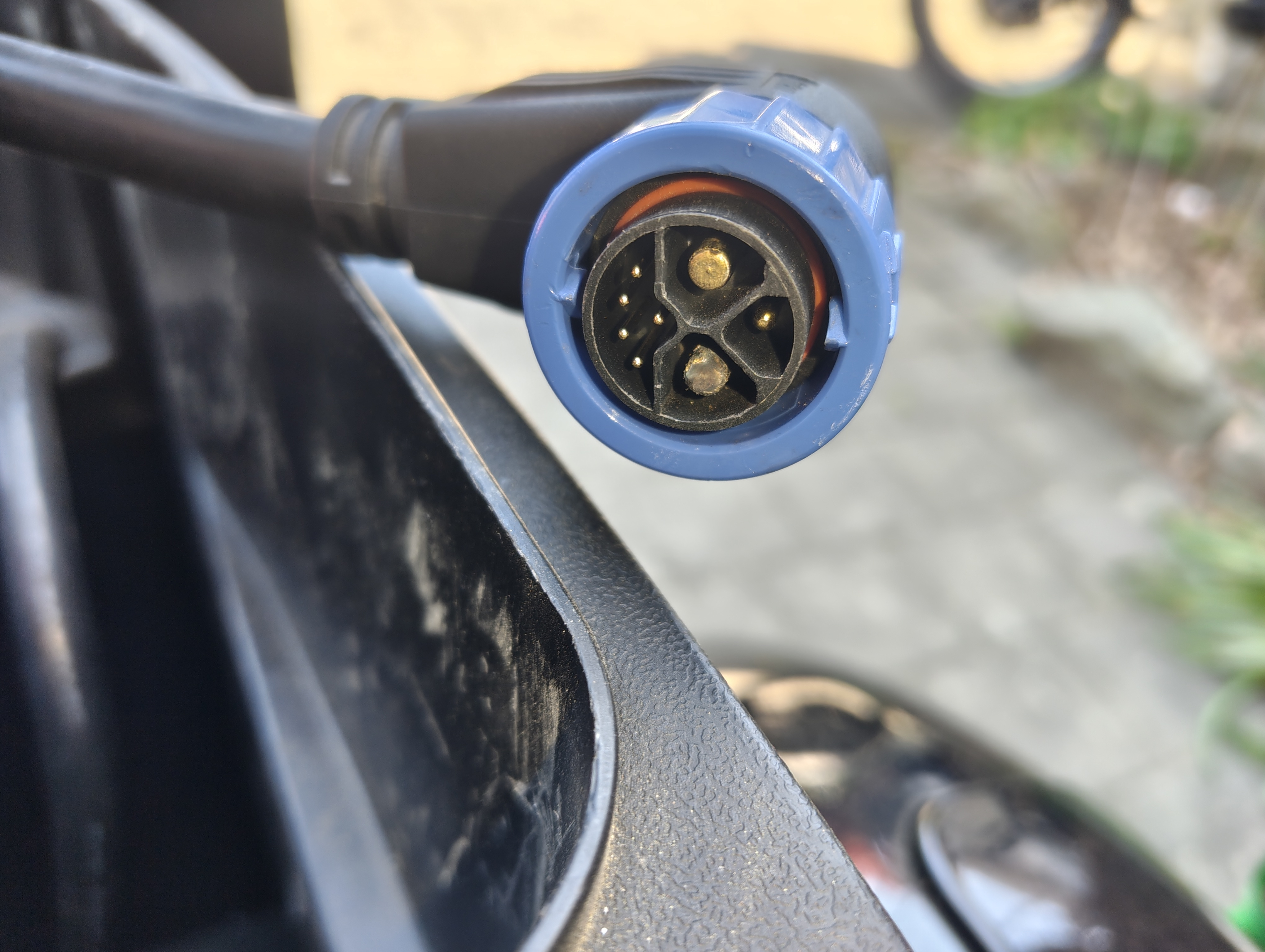 Ich musste den Akku rausnehmen, um ihn auf der Arbeit zu laden. Der Stecker ging schwer ab, ich habe dann gesehen, dass einer der Kontakte schwarz war. Und am Akku fehlt am Anschluss ein Kontakt! Und das nach der Reparatur! Der Roller fuhr wohl nur, weil es eben einen Überschlag gab! Krass!