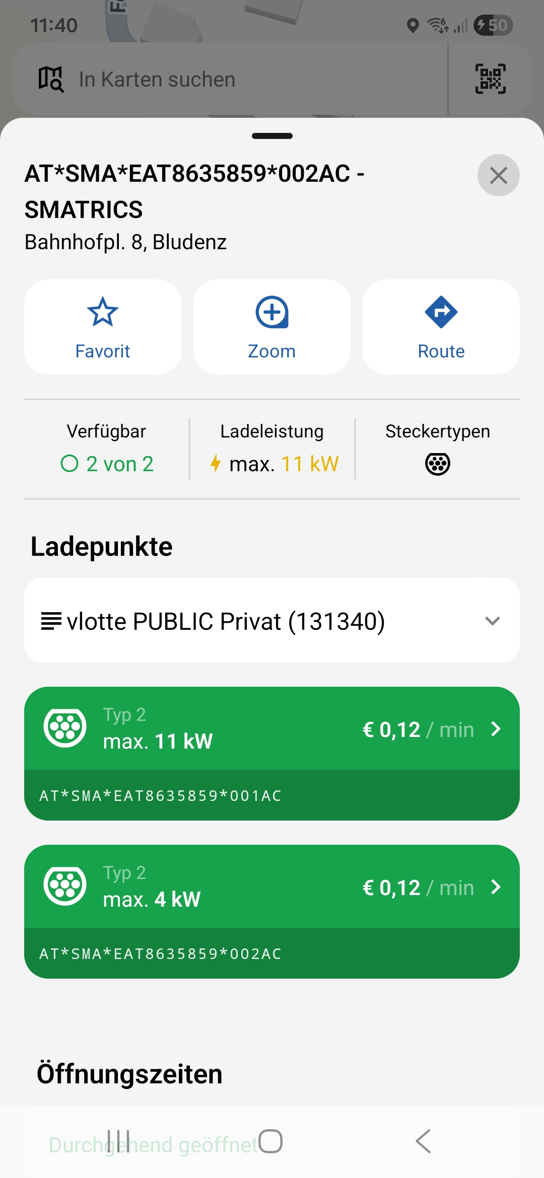 Bei Roming hab ich mal draufgezahlt, das war dann €0,12/ min, und das für ca 5kw, hat dann €37,20 gemacht, was nicht gerade Lustig war! Ich wollte nur Laden, nicht den Parkplatzt kaufen (Bild 3 & 4) :oops: