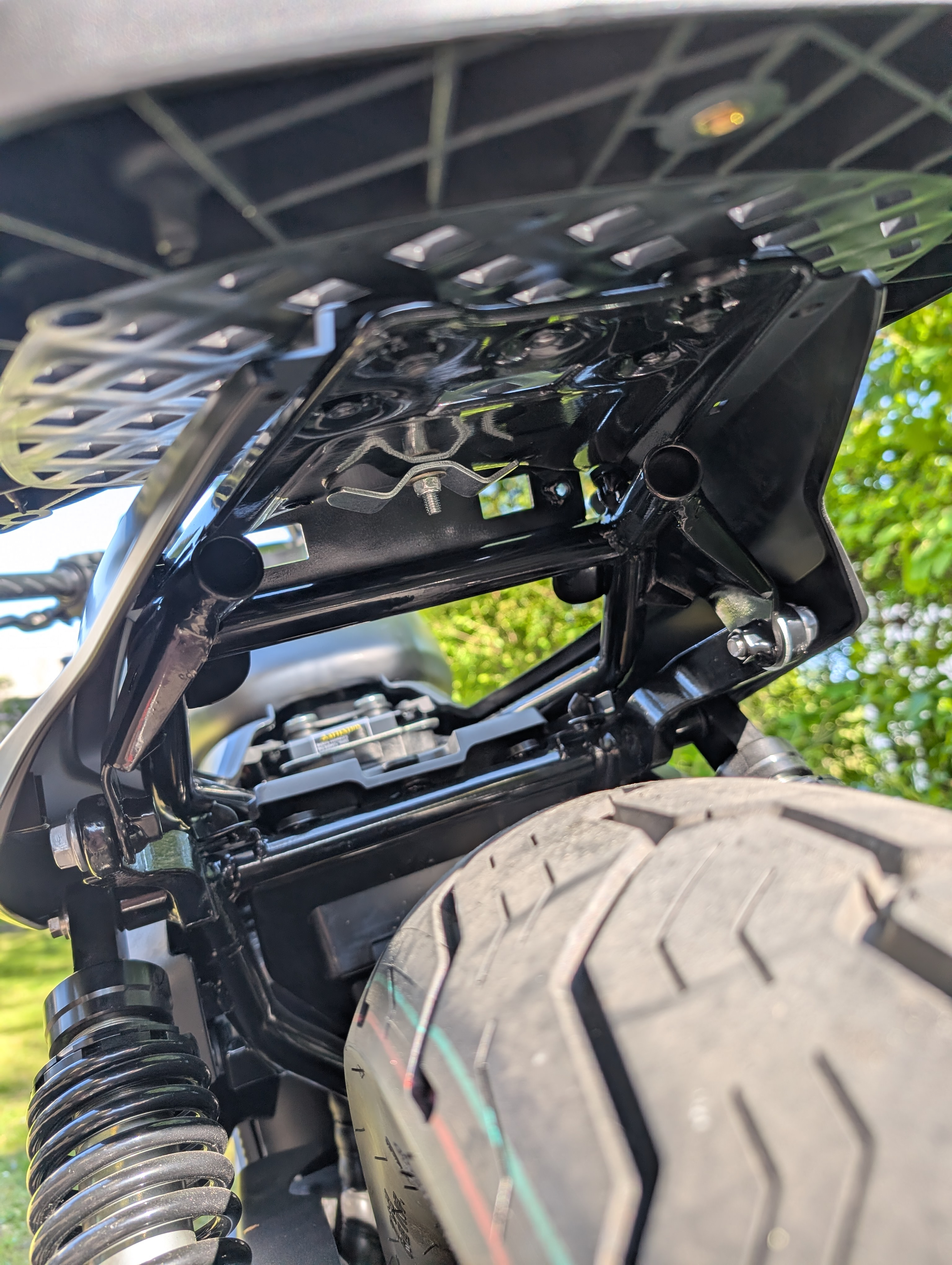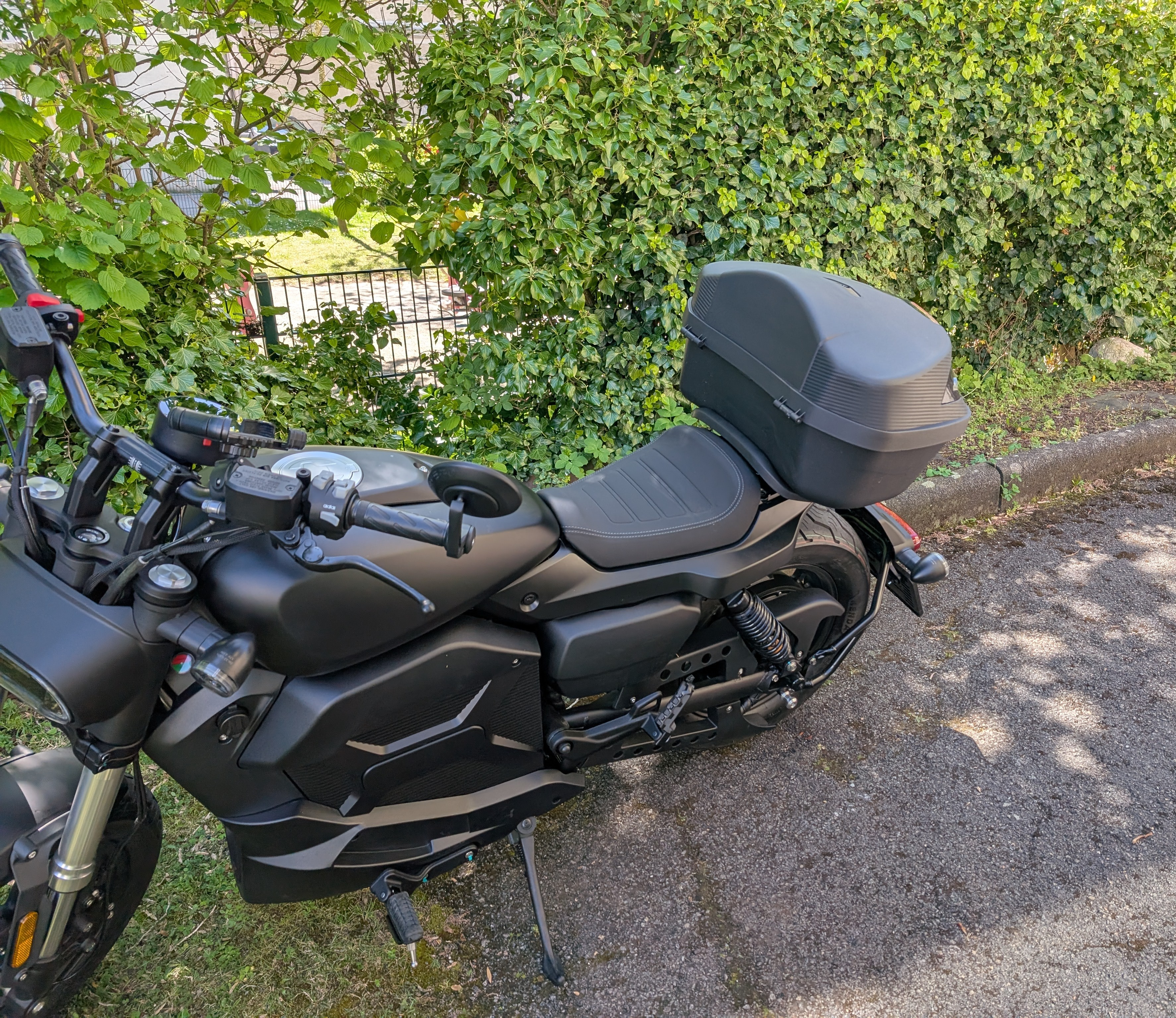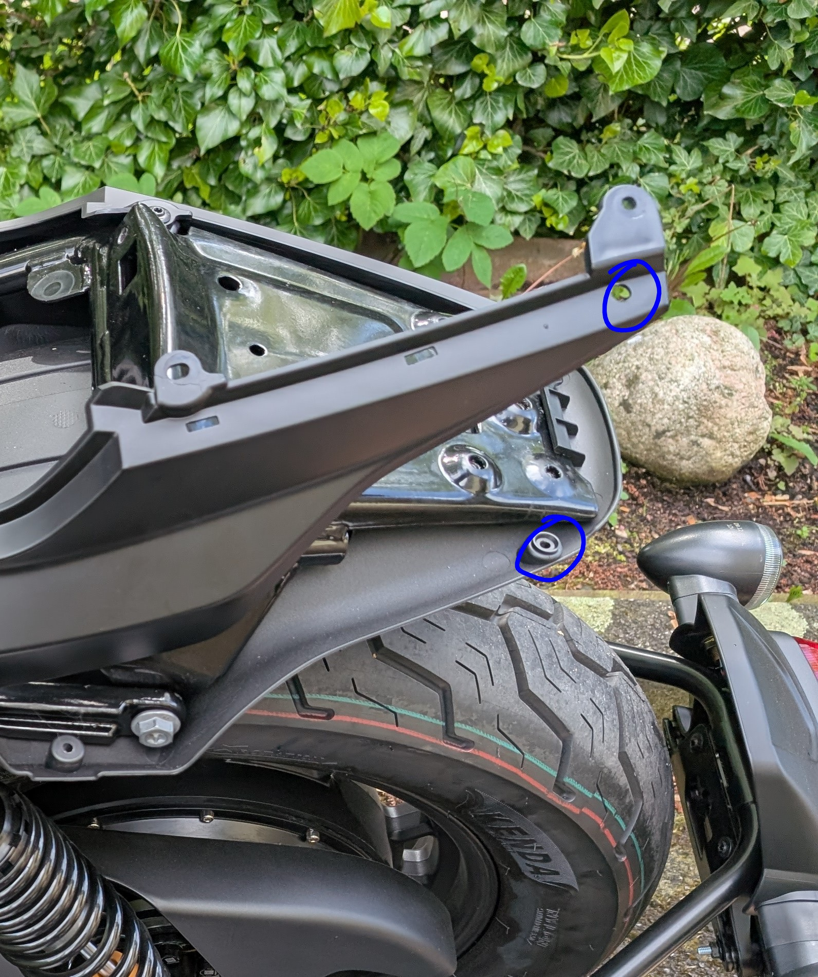 Ich könnte das Topcase auch noch etwas 10cm weiter hinten anbringen zum potentiell leichterem Aufstieg. Muss ich mal schauen ob ich es noch mal ändere.