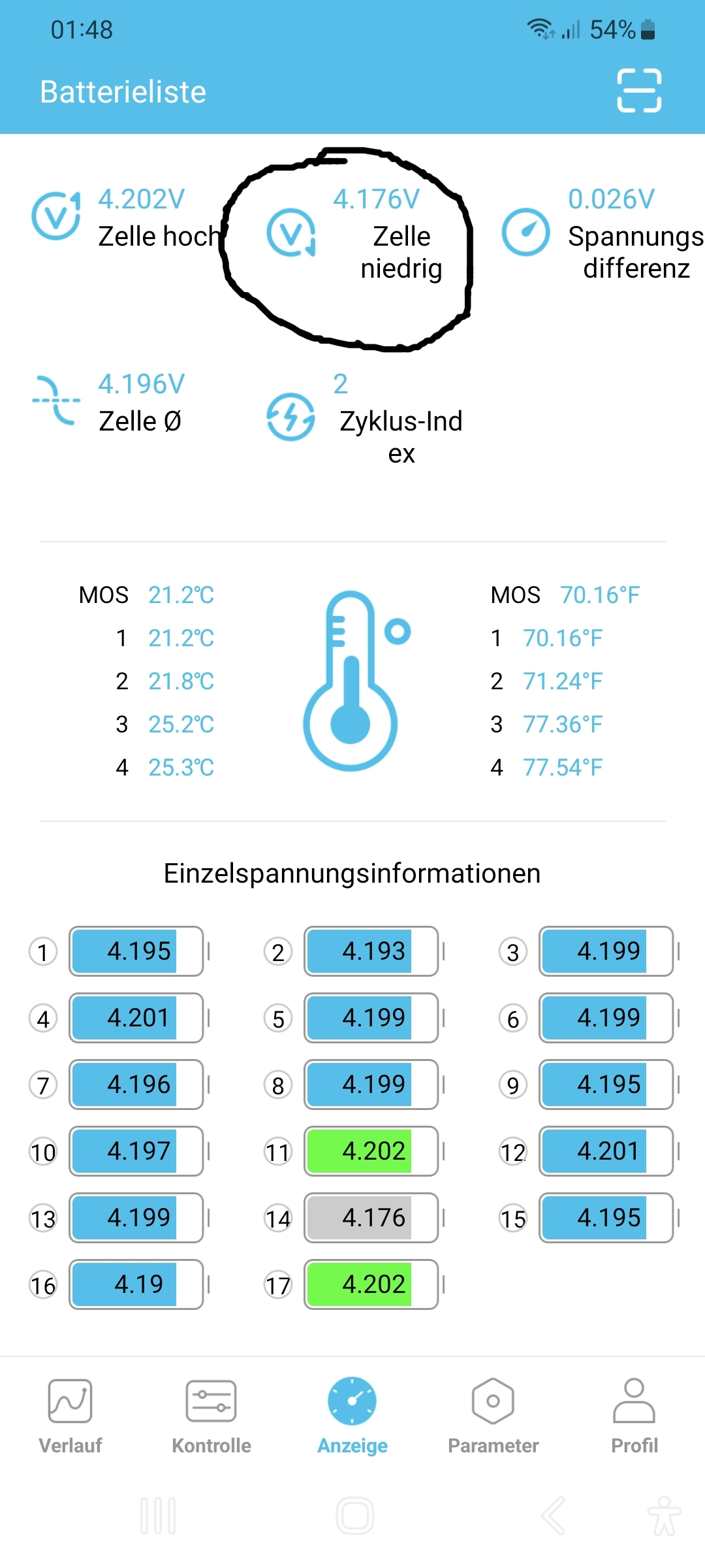 erst mal unter Last testen, ich vermute geschädigte Zellen. Daher auch gleich unter Last beobachten.