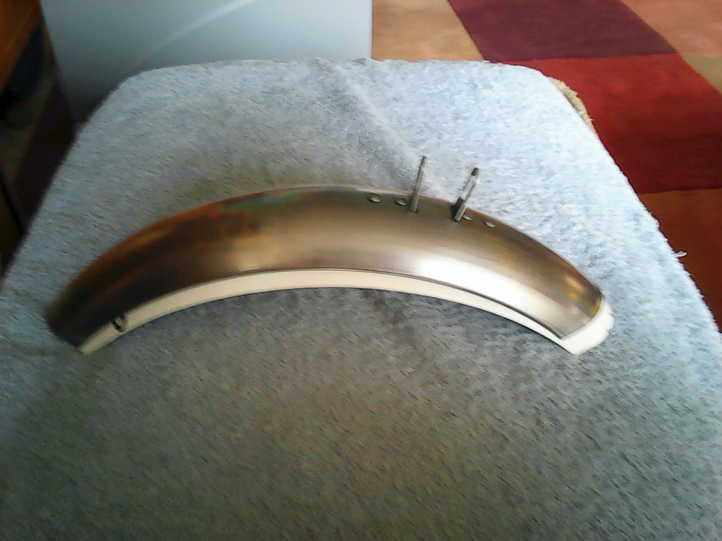 Das ging ja fix, Eneway. Schon einen Tag nach Bestellung wurde das vordere Schutzblech per DHL geliefert. Das es noch unlackiert ist, ist ja so abgesprochen worden. Aber während wir hier noch um zu kurze Schutzbleche und deren Verlängerung diskutieren, geht Eneway einen neuen Weg - ein noch kürzeres Schutzblech vorn: