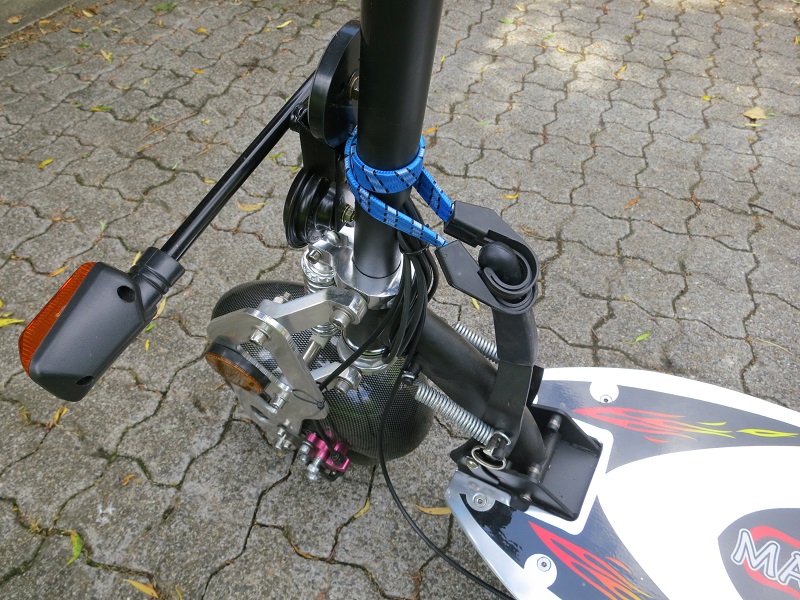 Und tatsächlich, ich hatte das Gefühl, dass der Lenker stabiler war. Mit nur einer Hand am Lenker, war das Fahrverhalten viel sicherer. Der Ansatz scheint brauchbar zu sein, jetzt muss das noch ordentlich ausgeführt werden. Vielleicht hat ja einer eine gute Idee?
