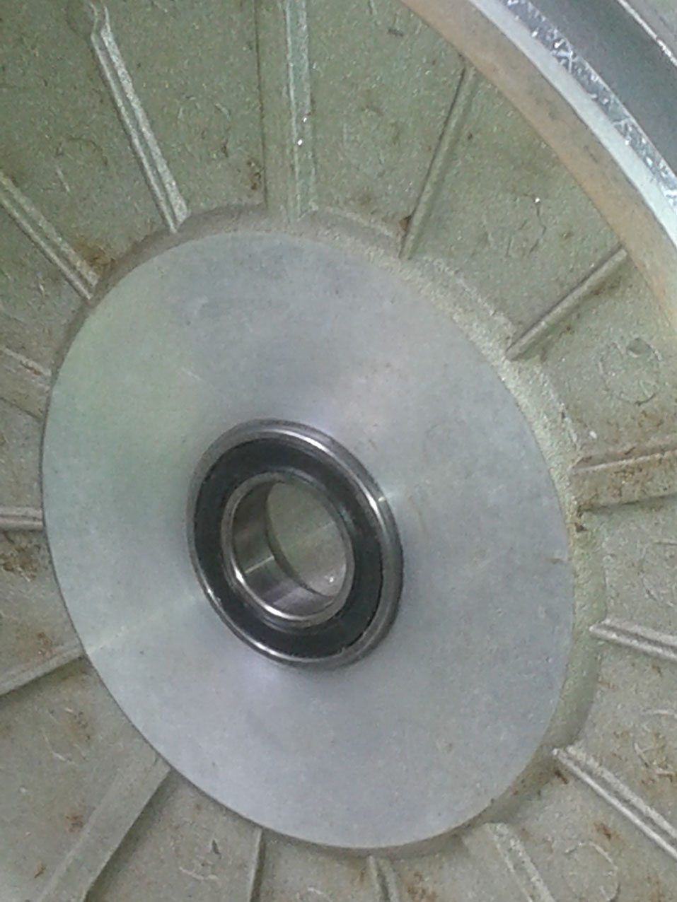 Habe den Lagersitz in der Rotorplatte mit 400derter Schmirgel nachgearbeitet! Rotorplatte gut 5 Minuten mit Lötbrenner befeuert! Lager rutscht so mit wenigen leichten Gummihammerschlägen in die Platte1