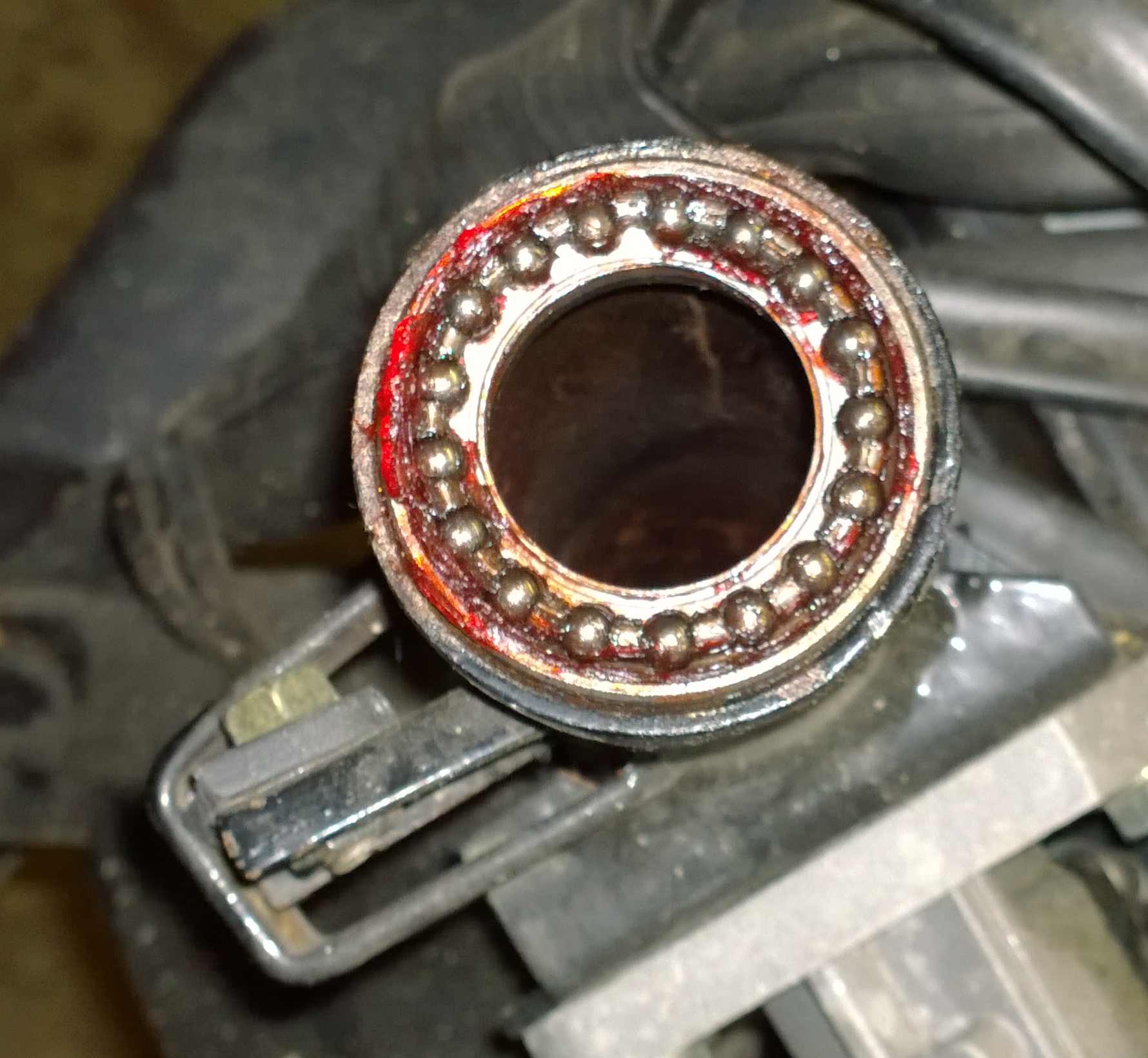Lenkkopflager etwas gelockert. Rastpunkt nahezu weg, habe es dann doch lieber aufgemacht ... wenn schon mal alles so schön frei liegt.