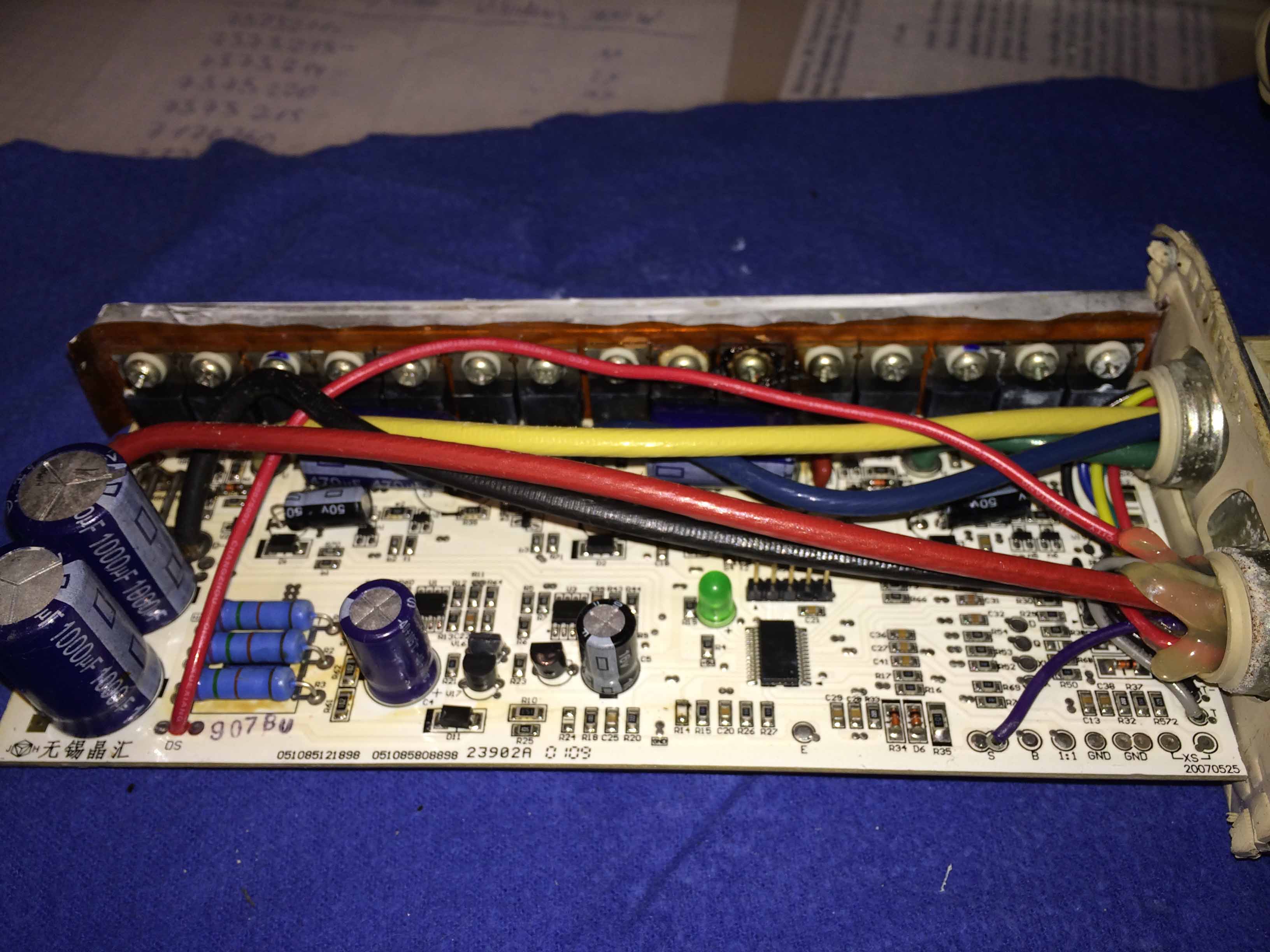 Hallo Habe mir die IRF1407 bestellet und alle 15 stück ausgetauscht. Die Elkos 1000uF 2 Stück waren auch hinüber. 470uF habe ich auch ausgetauscht. Nach dem einschalten kommt ein kurzes geräuch und die Led blinkt habe versucht mit zu zählen müsste 8 mall und danach 4 uns so weiter 4 - 4 - 4. Kent einen sich mit den fehlercode aus? Brauch Hilfe. Wen ich den gasgriff der passiert gar nicht.