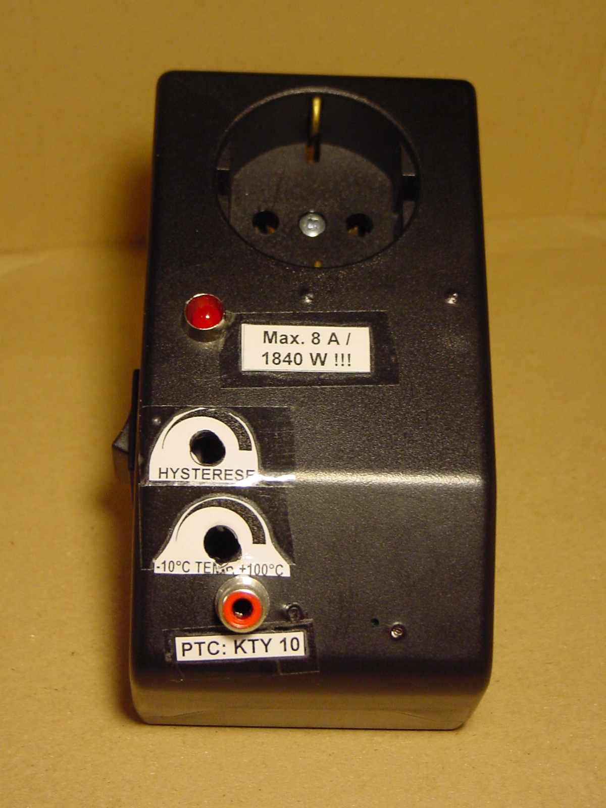 Als pures Experimentierprojekt wollte ich, da weder zu vertretbaren Kosten noch in der von mir benötigten Bauform als Zwischensteckdose verfügbar (EDIT am 08.01.2016: Beim blauen C gibt es inzwischen genau so etwas...), mir selber einen Thermostaten bauen, der am Netz zu betreiben ist und in den ich direkt meine 230V Batterieheizung im Thunder-Fury einstecken konnte, samt dem zum Thermostaten gehörenden PTC-Widerstand, den ich schon vor der Weichnachtspause in meiner Batterie vergraben hatte, direkt neben dem Sensor vom Batterietemp.-Solarthermometer.