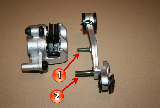 Die Ankerplatte und den Bremssattel voneinander trennen und die Stifte (1 und 2) reinigen.