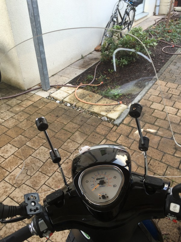 Ich glaube nicht, dass das Windschild lange halten wird, entweder bricht der Windschild Träger oder (schlimmer) innen die Halterung der vier Schrauben am Lenker. Das wäre übel.