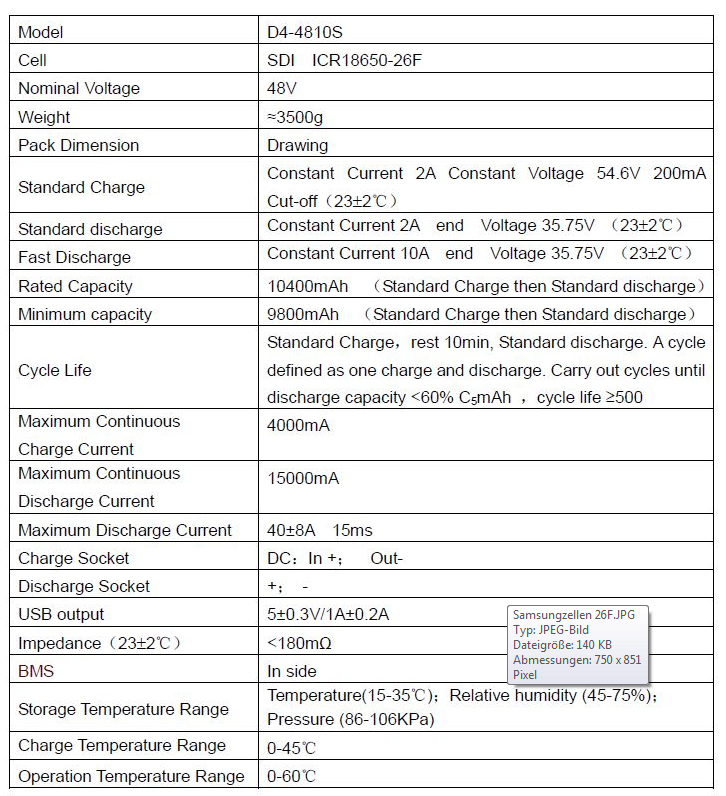 danke für deine Antwort. Auf der Seite war ich auch schon, und habe den Fehler entdeckt. Aber auch wenn ich den Akku bislang noch nicht auseinandergenommen habe bin ich sicher, dass die Angaben des Datenblattes korrekt sind. Schließlich zeigte mein Multimeter bei der Lieferung des Akkus 52V an, dass ist mit nur 10 Zellen in Serie nicht zu schaffen. Offenbar wurde bei der Wartung der Webseite einfach geschlampt.