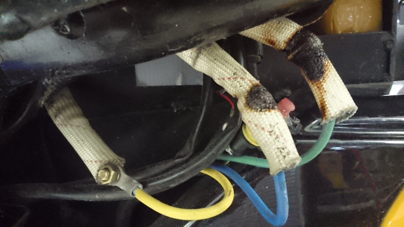 Das hat wohl schon etwas länger gebruzzelt. Halt kein Klemmbrett verbaut und auch noch in der Nähe der Schwinge verlegt.