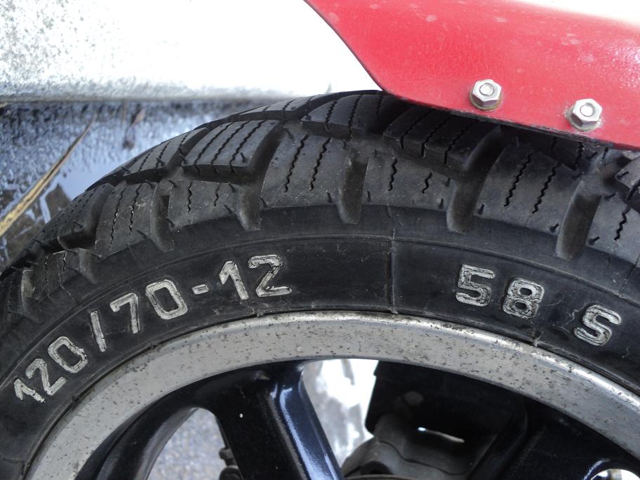 Heute Mittag habe ich zufällig einen geparkten Roller mit Lamellen-Heidenau gesehen:Das ist also ein echter Lamellenreifen. Mit quer angeordneten Lamellen: Zum Beschleunigen und Bremsen ideal. Leider gibt es keine Längsrillen gegen seitliches Wegrutschen.