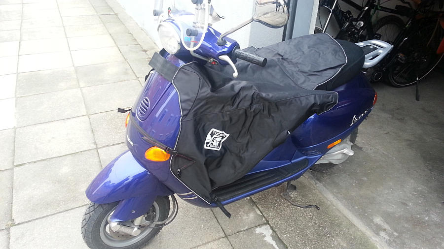 Dazu eine Tucano Urbano "Termoscud" Decke: So bin ich dann super gegen Wetter und Kälte geschützt und kann fast das ganze Jahr unterwegs sein, bei Glätte und unter 0°C laß ich das Zweiradfahren aber dann doch bleiben.