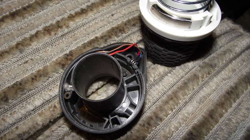 Rot-Blau-Grün vom anderen Kabel gehen zu einem Mini-Baustein ( im Bild die Abschlussstellen zu erkennen). An diesem führt im zusammengebautem Zustand das oben im Bild abgebildete Metallstück vorbei. Aber nicht als Schleifer, eher als Näherungsschalter.