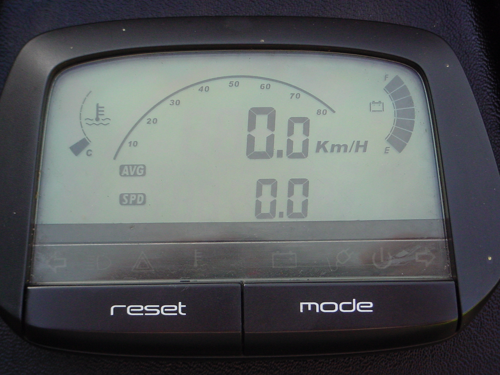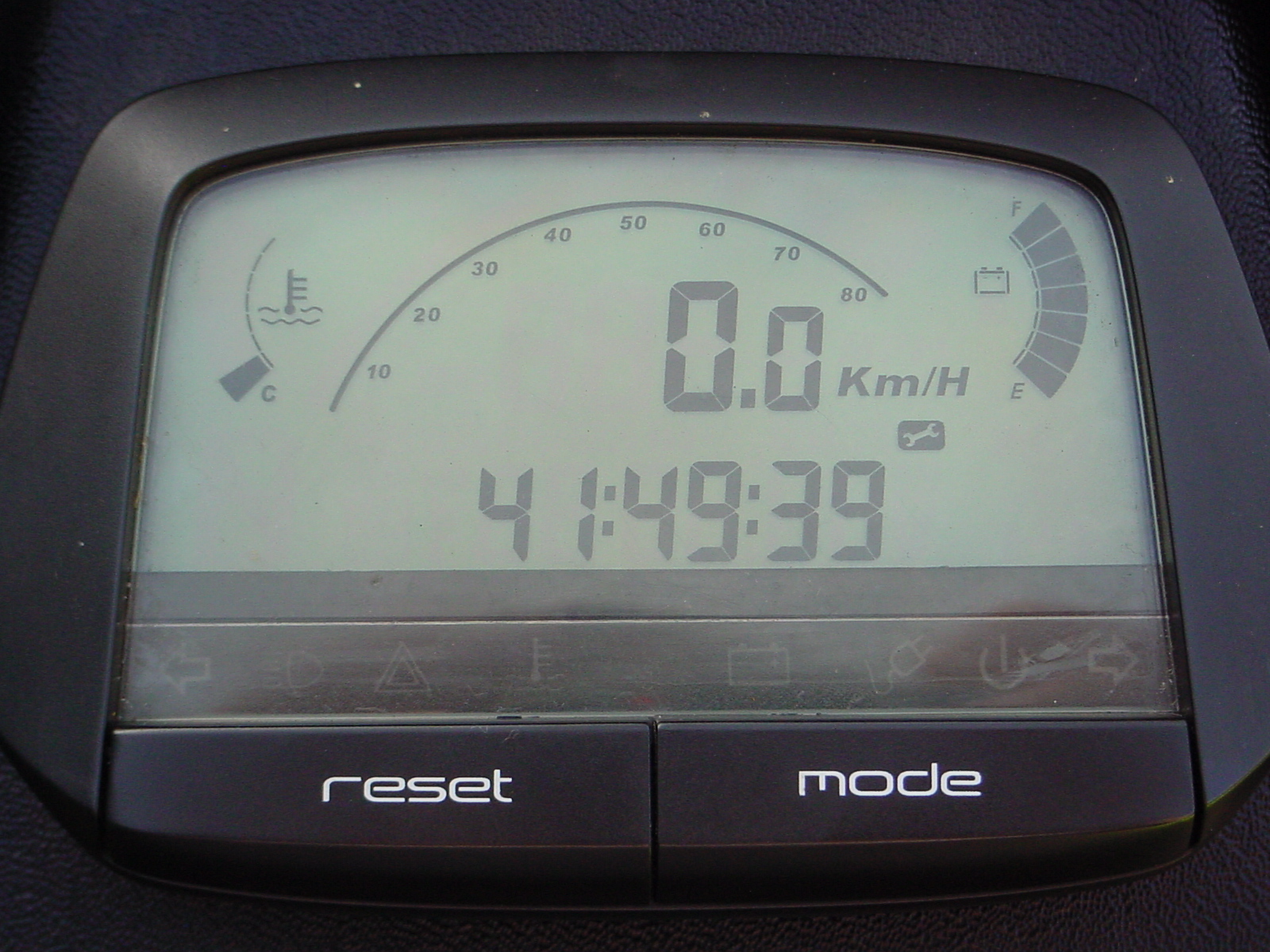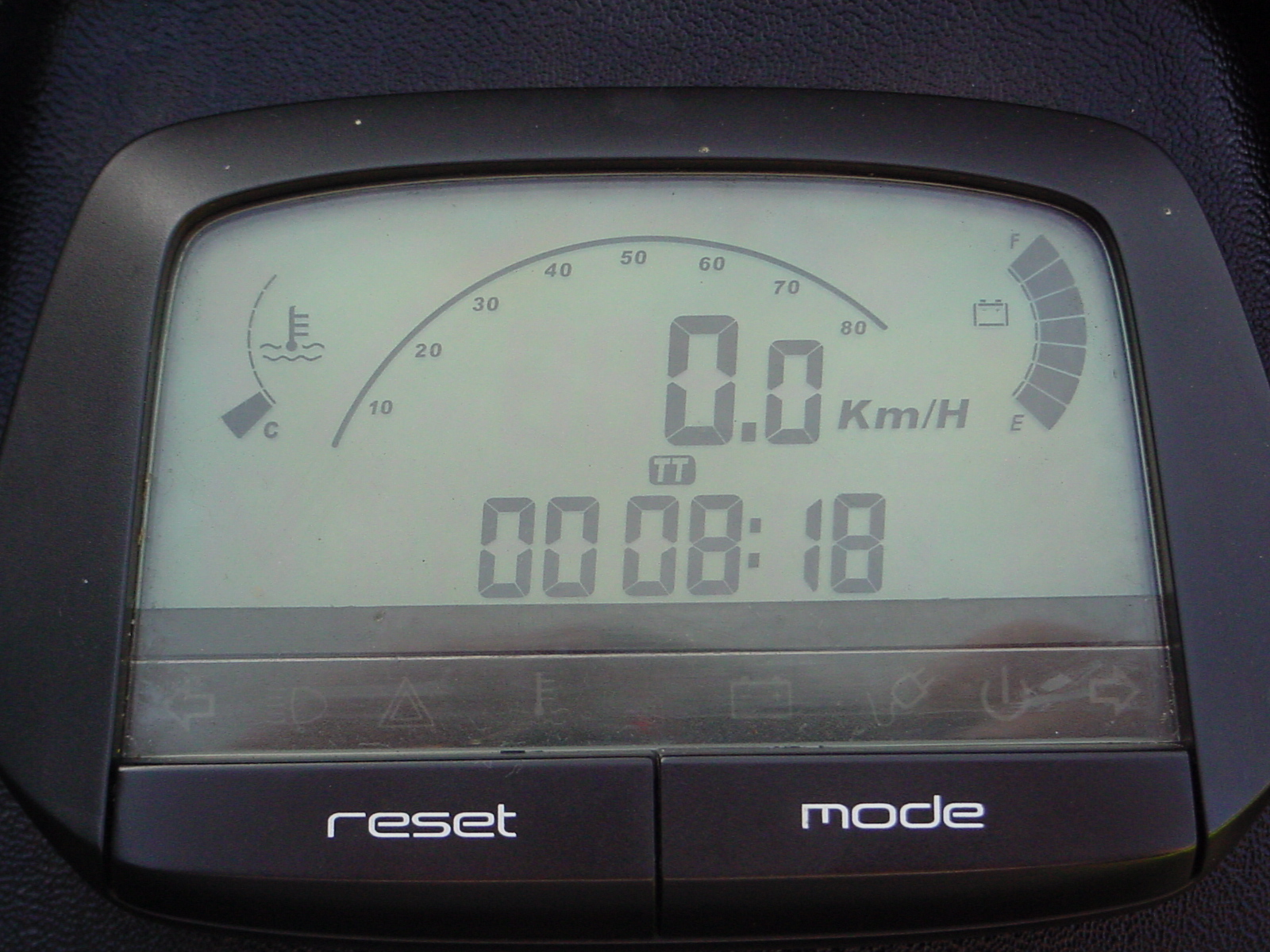Modus 1 zeigt unten den Stand vom Tageskilometerzähler 1 an. Mit längerem Druck auf den reset-Knopf kann genullt werden. Auch Modus 4 und 5 hängen am Tageskilometerzähler 1 mit dran.