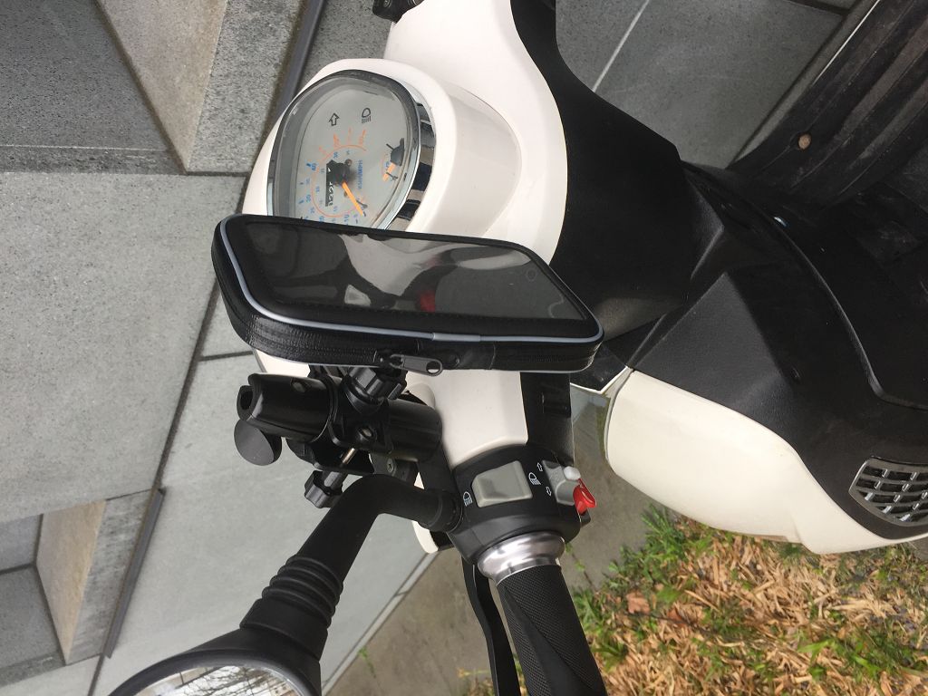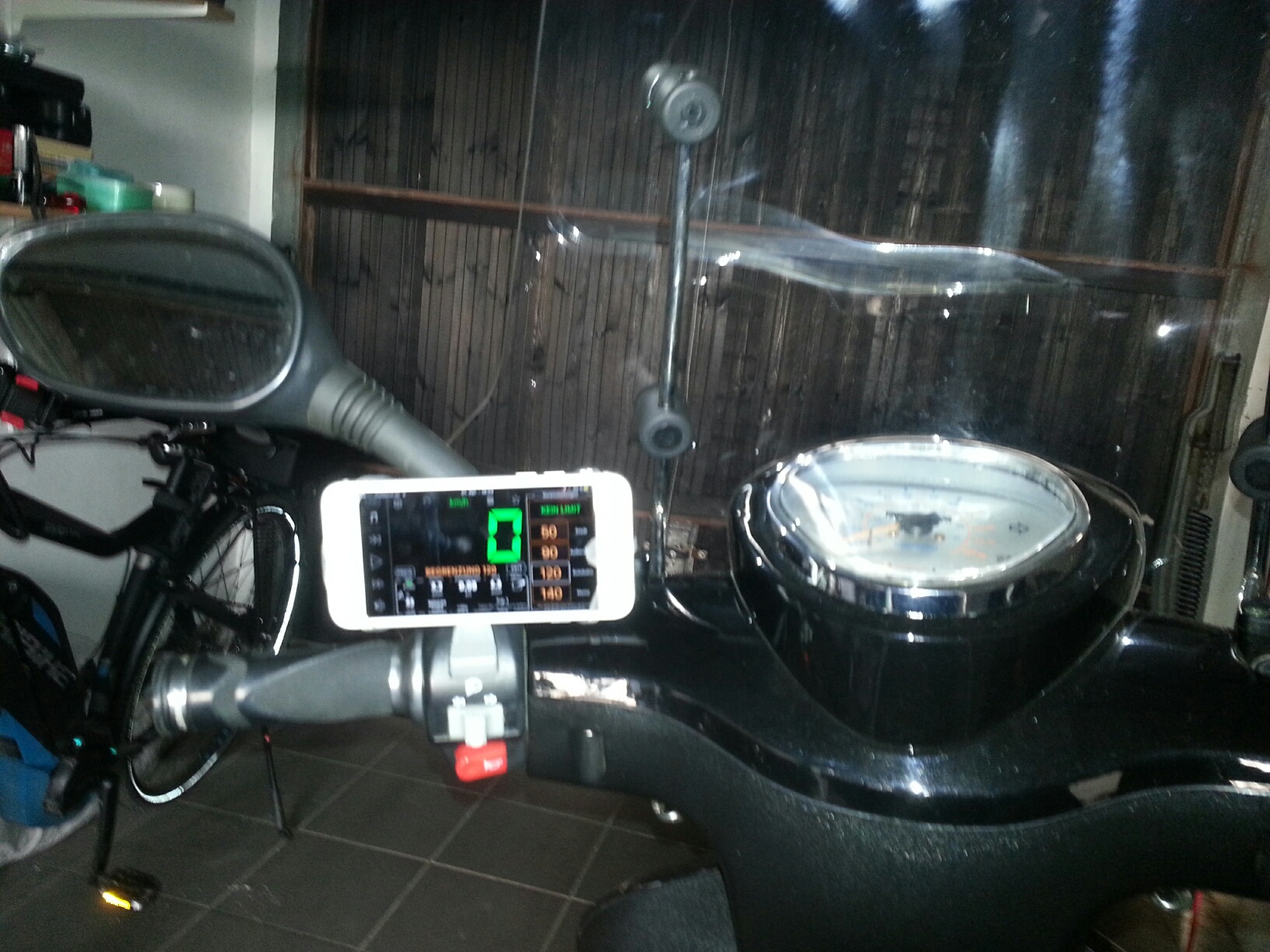 Dirk hat mich auf die Idee mit dem Spiegel gebracht, einfach meine Handyhalterung, die ich normalerweise an meinem MTB benutze, am Spiegel des Uranus zu befestigen und voila - es funktioniert auch dort, obwohl die Spiegelstange viel dünner als mein Lenker des MTB ist. Hält bombenfest -keine Vibration.
