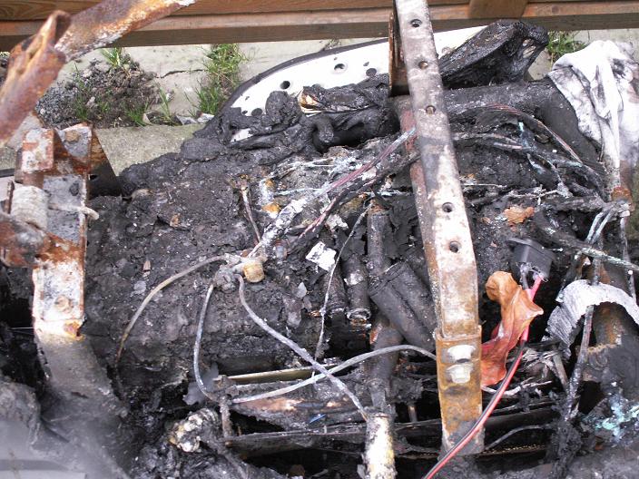 Es waren drei Gutachter hier. Hausrat-, Gebäude- und Rollerversicherung. Die Gehäuse und Drähte sind geschmolzen, Sie können nichts mehr sehen. Anhand des Batteriefotos erkennen Sie, dass nur eine Zelle vollständig abgebrannt ist. Das war die, welche falsch eingepolt war.