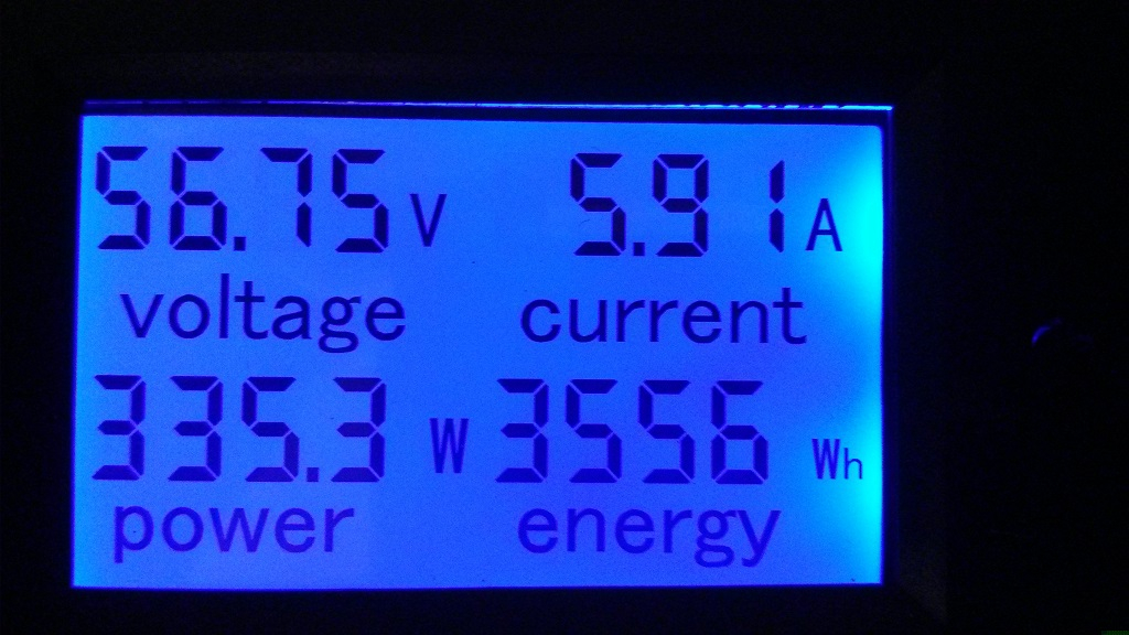 Jetzt das Kabel angeschlossen: (Die angezeigten Wh blieben noch von den vorherigen Ladevorhängen stehen) Nach dem Einschalten des Ladegeräts und etwa 3,5 Stunden später sah das Ladeverhalten dann so aus: Der Akku war dann nach insgesamt etwa 4,5 Stunden voll. Der Lüfter von Ladegerät war aus und es gab nur noch ein wenig Erhaltungsladung: Das bedeutet also: