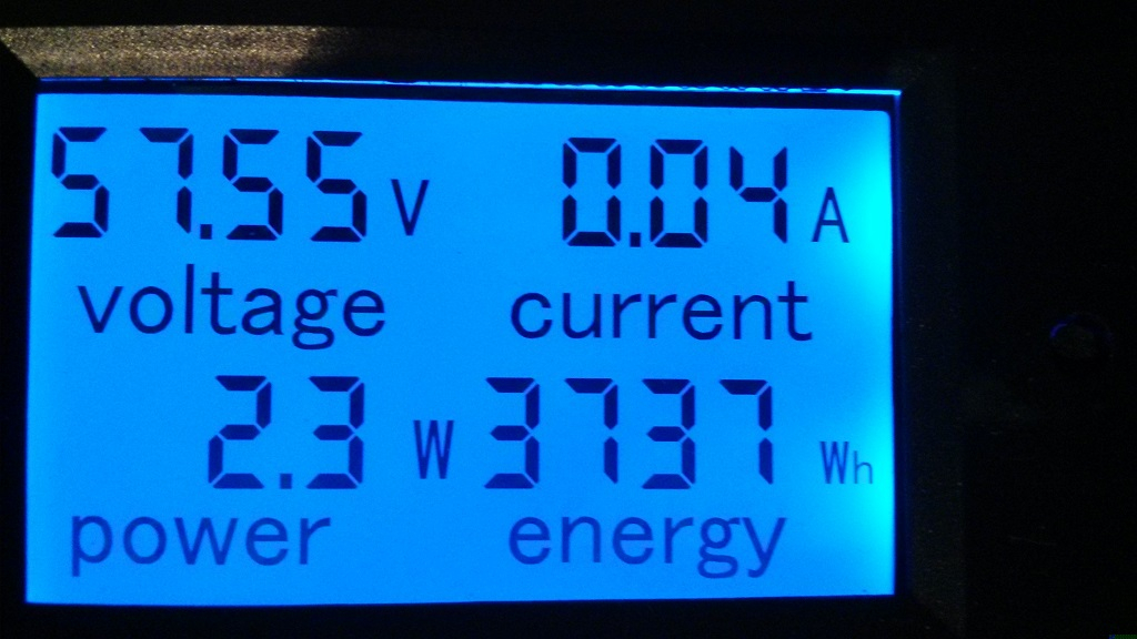 Jetzt das Kabel angeschlossen: (Die angezeigten Wh blieben noch von den vorherigen Ladevorhängen stehen) Nach dem Einschalten des Ladegeräts und etwa 3,5 Stunden später sah das Ladeverhalten dann so aus: Der Akku war dann nach insgesamt etwa 4,5 Stunden voll. Der Lüfter von Ladegerät war aus und es gab nur noch ein wenig Erhaltungsladung: Das bedeutet also: