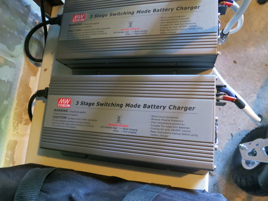 Kalle hat mir über Kleinanzeigen seine beiden MeanWell-Ladegeräte verkauft. Ich brauchte nur noch Kabel mit passendem Stecker an Plus und Minus anschrauben und schon waren die Super-Lader einsatzfähig.