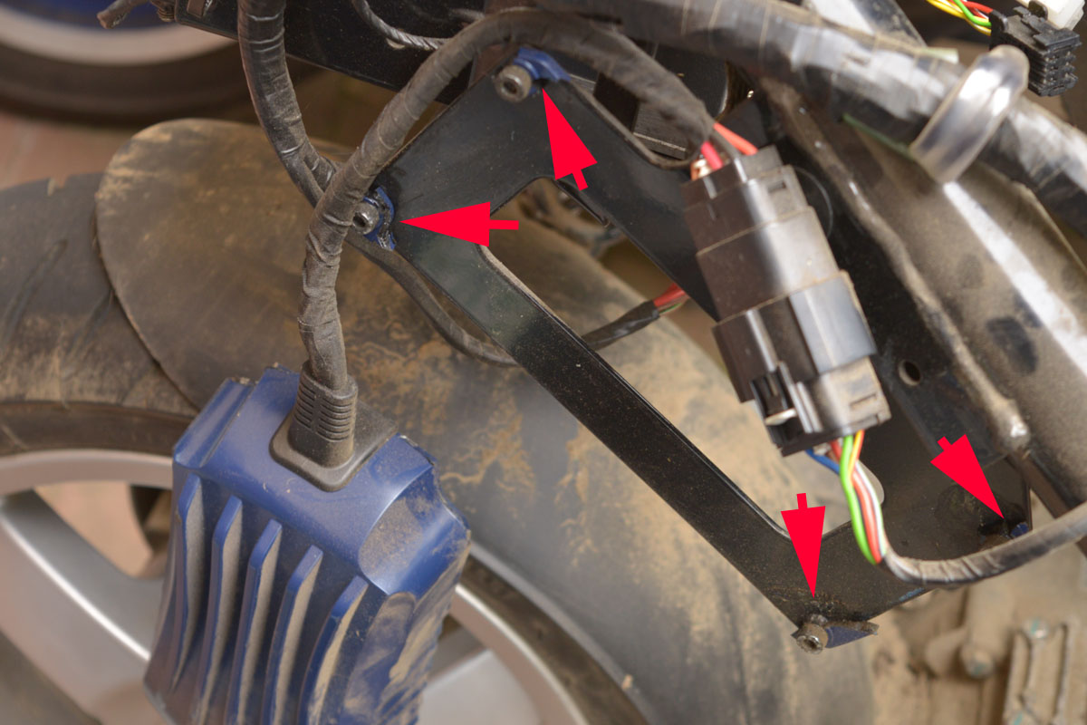 Am Rande bemerkt: Auch bei meinem "guten" E-Vivacity war das Ladegerät aus allen 4 Halterungen gebrochen, im Bild die roten Pfeile auf der Platte oberhalb des blauen Streamline Teils. Fällt zwar nicht heraus, hängt aber im Kabel. Hilft zwar nicht, aber ein geiles Design, 2 Status LED (wie verbaut natürlich unsichtbar), Hersteller Exxo,FR (Der macht auch das Diagnosetool TEP2010)