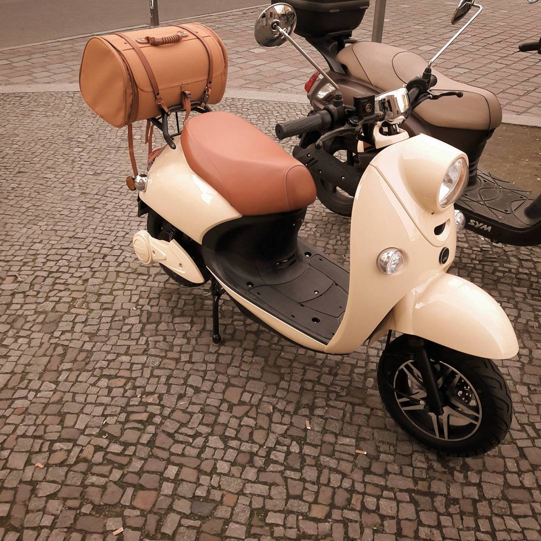 Ich habe an meinem cremefarbenen Unu die braune "Classic"-Tasche von SIP - das macht den sommerlichen Retrolook komplett