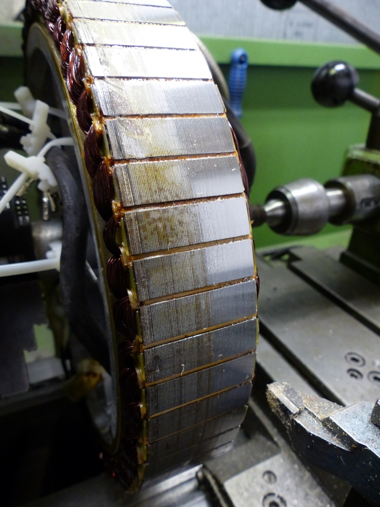 Die Saga ging heute in ihre nächste Runde. Derart vertäut ging der Stator auf der Drehmaschine eines Bekannten zu einem Rotor über: