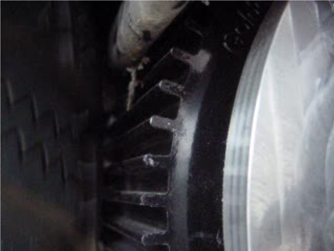 Bei Raddrehzahlen etwas jenseits der 50km/h ist zusätzlich die radiale Steifigkeit dieses Reifens so liderlich, dass sich der Reifen um besagten mm und mehr ausdehnt und doch am Motor streift