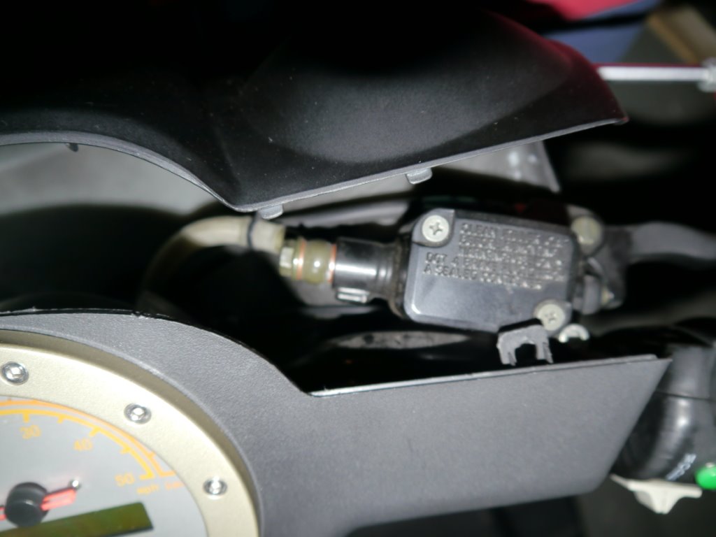 3.Zum Dot4 Nachfüllen die 4 Kreuzschlitzschrauben vom Deckel des Bremsflüssigkeitsbehälter lösen. Deckel und Dichtung (Antischwappbehälter) entfernen. Behälter sollte immer zur Hälfte gefüllt sein.